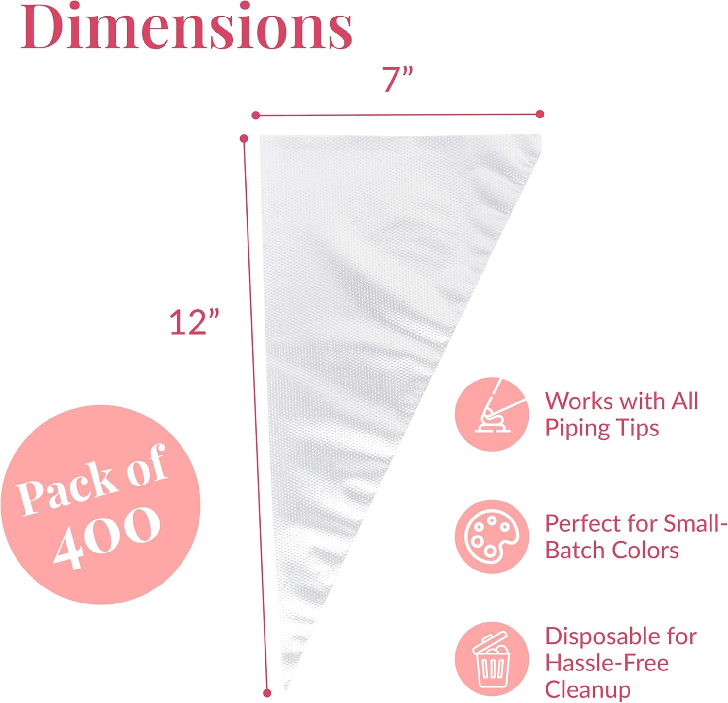 Prestee 400 Anti Burst Disposable Piping Bags, 12" - Pastry Bags, Icing Piping Bags, Tipless Piping Bags, Frosting Bags, Piping Bag, Cake Decorating Bags, Christmas Holiday Cake and Cookie Decoration
