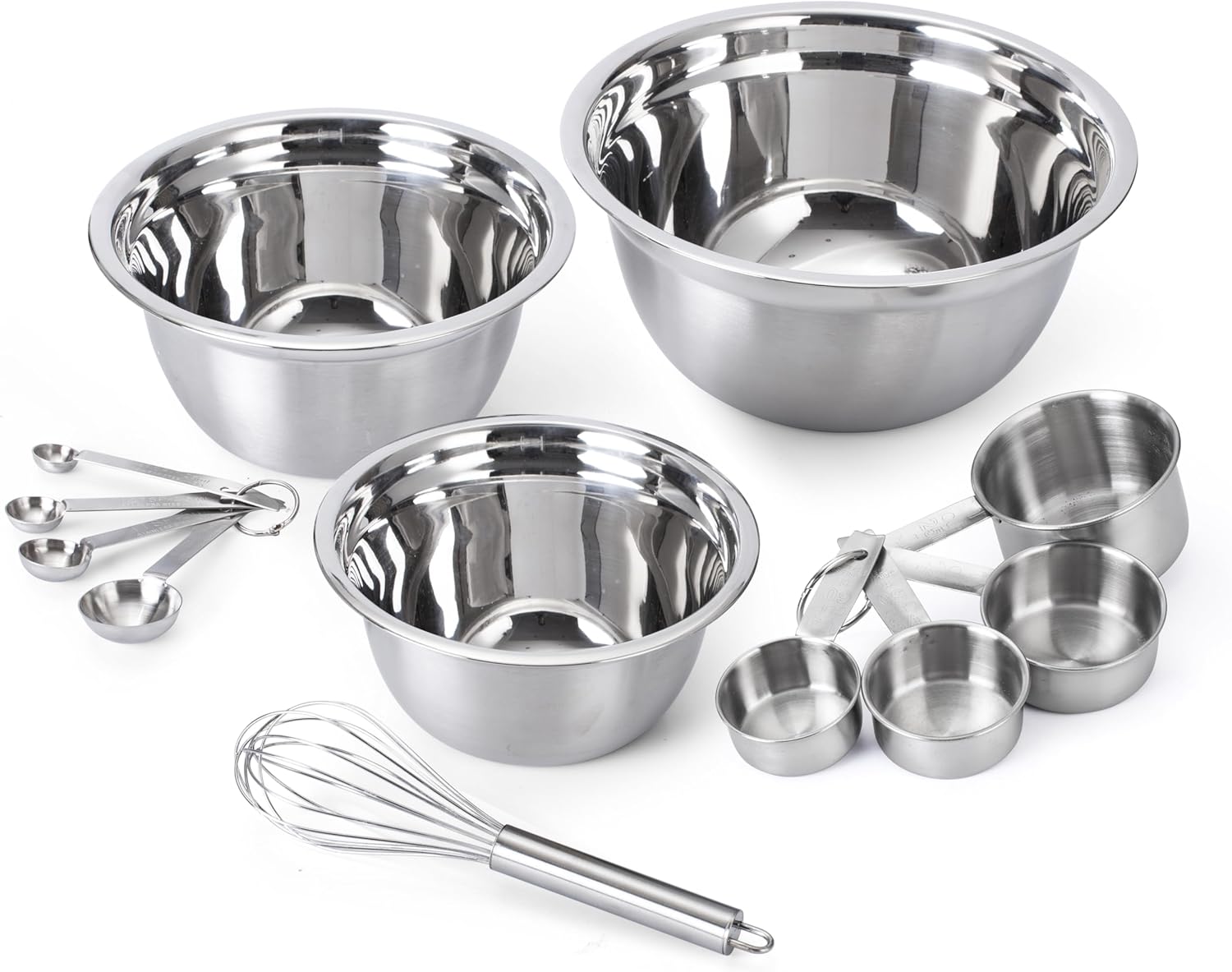 - Complete 12-Piece Set: Transform your kitchen with a comprehensive 12-piece stainless steel bowl set, featuring 3 bowls, 1 whisk, 4 measuring cups, and 4 measuring spoons for an all-in-one cooking and baking solution.