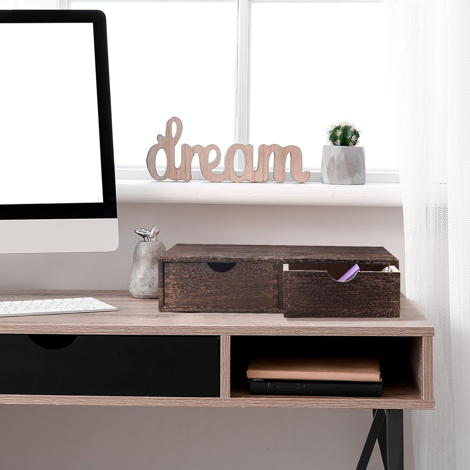 - 2 Drawers Design: the 2 drawer design of the wood organizer drawer allows for easy access and visibility to most of your files; You can use different tiers to classify your different files; This eliminates the need for searching through cluttered desk, and saves valuable time during your busy working routine
