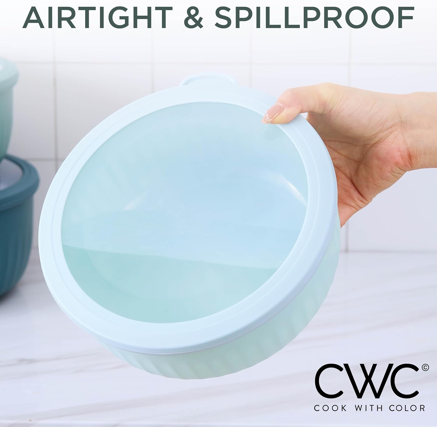 - Cook with Color 12 piece plastic mixing bowl set - non slip bowls with lids; easy to clean, sturdy mixing bowls.