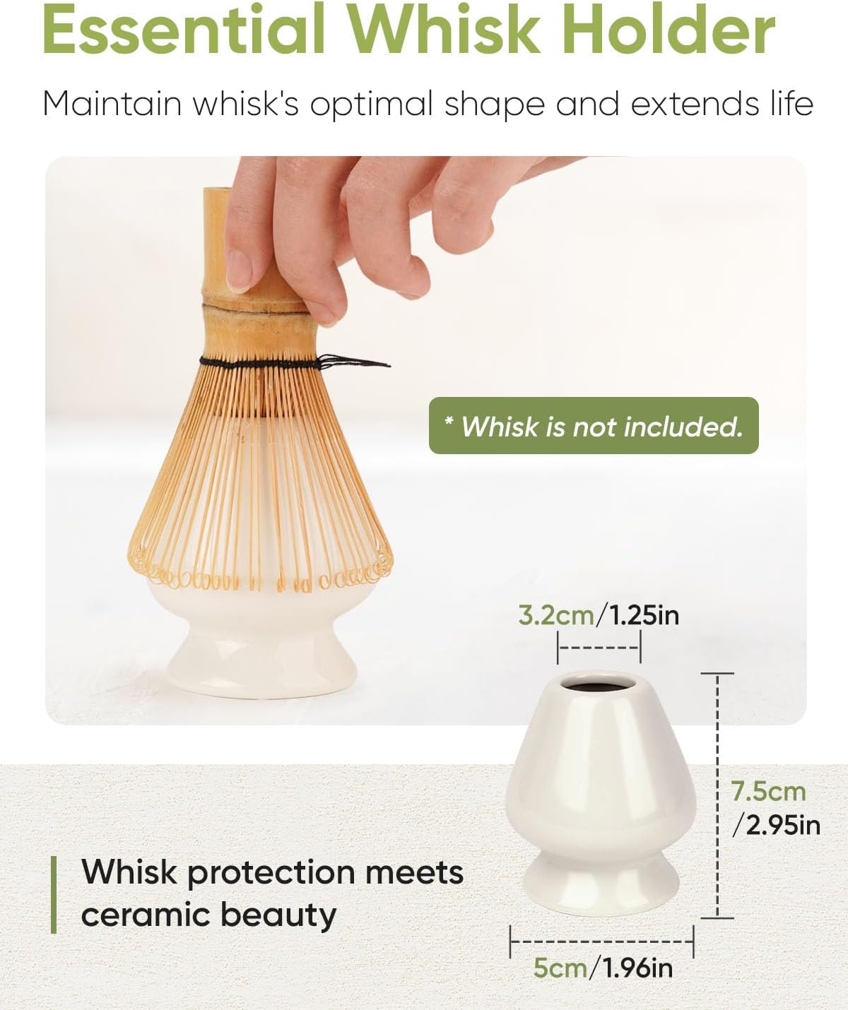 - Essential Matcha Whisk Rest: The ceramic matcha whisk rest ensure hygienic storage of your matcha whisk, supporting it at the ideal drying angle and maintaining optimal whisk shape for longer whisk durability
