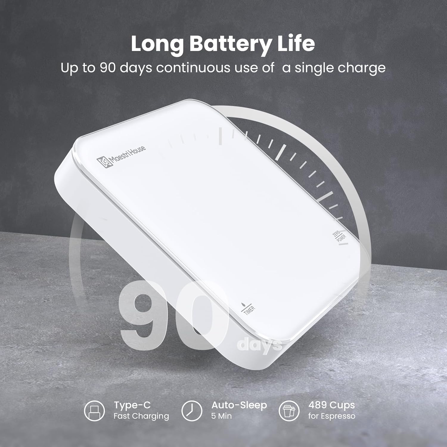 - 【Long Standby Rechargeable Battery 】The gram scale has a built-in 500 mAh lithium battery and a USB-C charging cable in the package. There is no need to replace or buy batteries; they can be used for up to 90 days on a single charge. The coffee scale will automatically enter sleep mode after 5 minutes of inactivity to save power