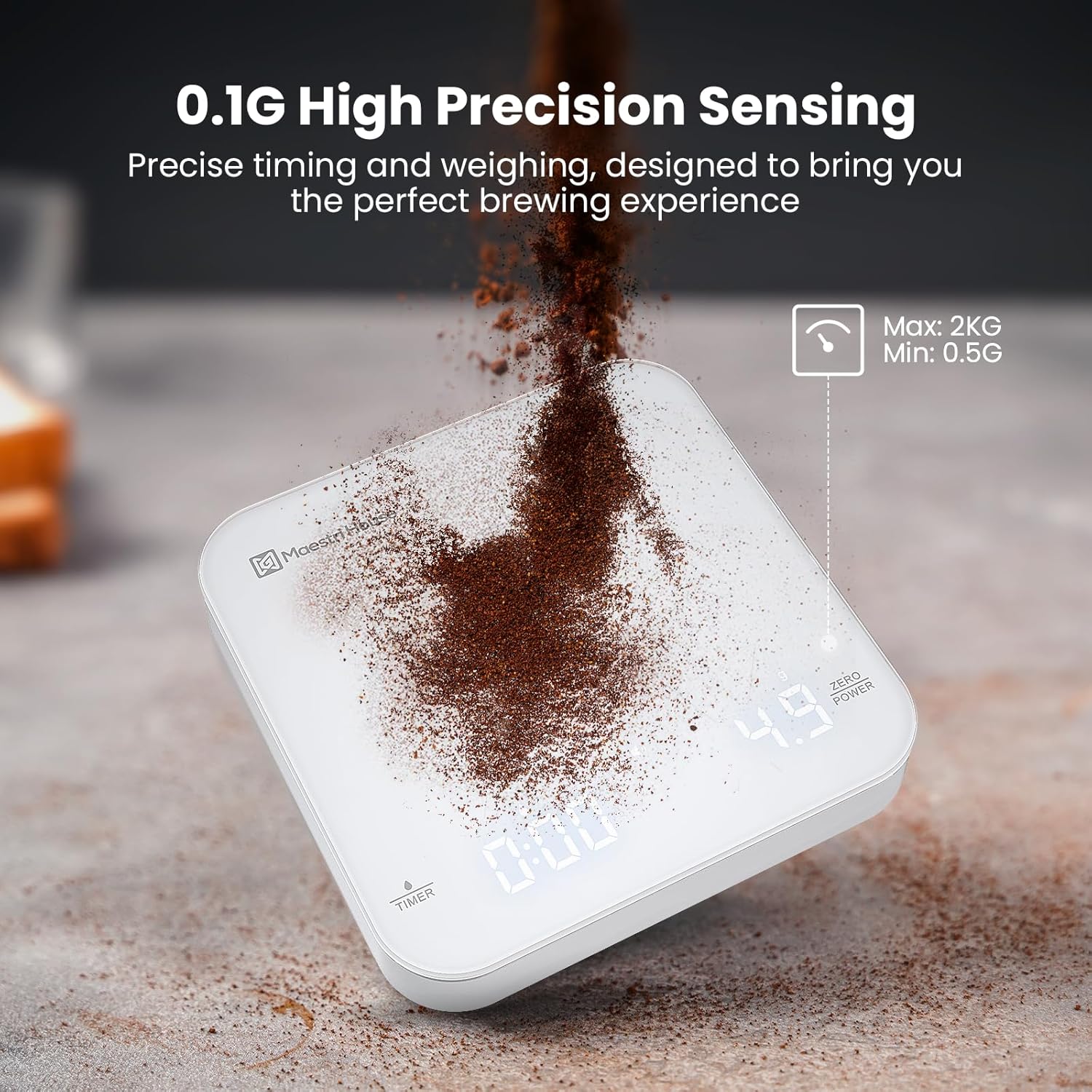 Rechargeable Mini Coffee Scale with Timer, Maestri House Espresso Scale, 2kg/0.1g Accurate Scale for Espresso and Pour-Over Coffee, Portable Digital Kitchen Scale with Automatic Timing(White)