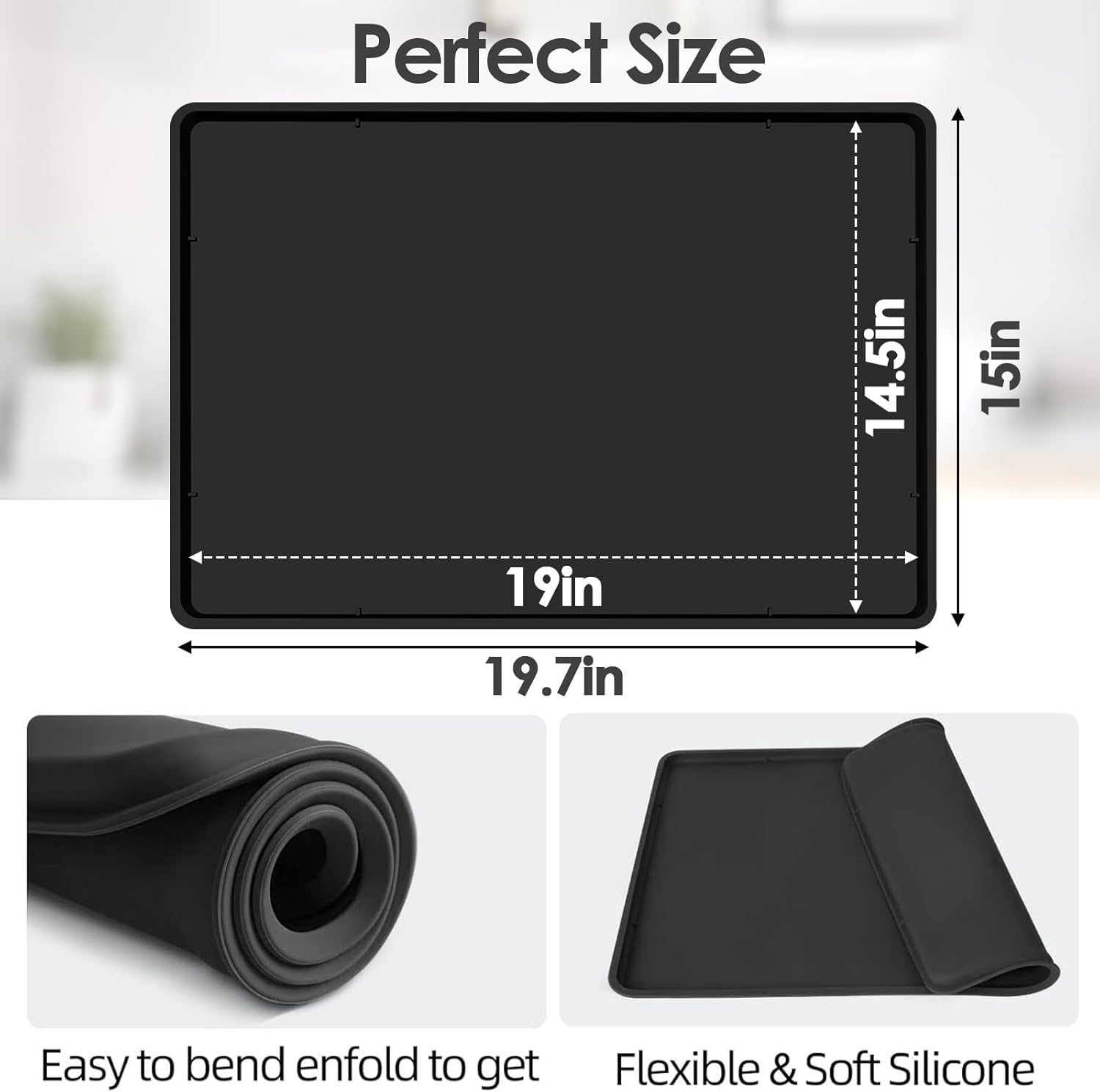 - Non-Slip Surface: The coffee mats for countertop external size at 19.7x15x3/5 in, internal size at 19x14.5in,featuring a non-slip surface, our coffee mats prevents the coffee machine from sliding due to external forces and ensures that the coffee maker is fixed in place, which is a very humanized design. Suitable for most models of coffee makers, please measure your coffee machine size before order.