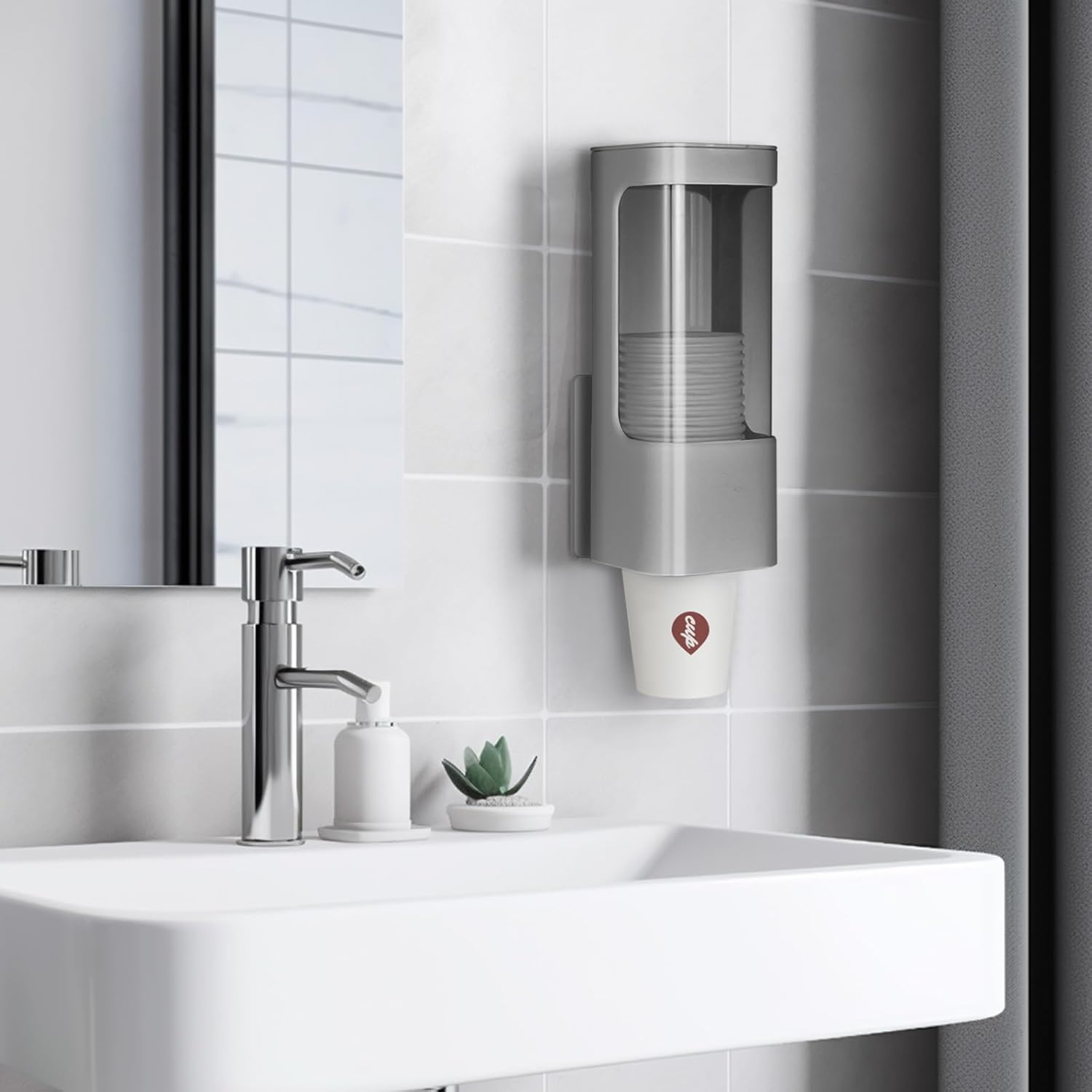 - [Durable, High-Quality Materials]: Made of high quality ABS and transparent PC, this water cooler cup dispenser is heat-resistant, corrosion-resistant, and lightweight yet sturdy. Designed for everyday use, this wall mount cups dispenser is ideal for busy bathrooms, kitchens, and office spaces.