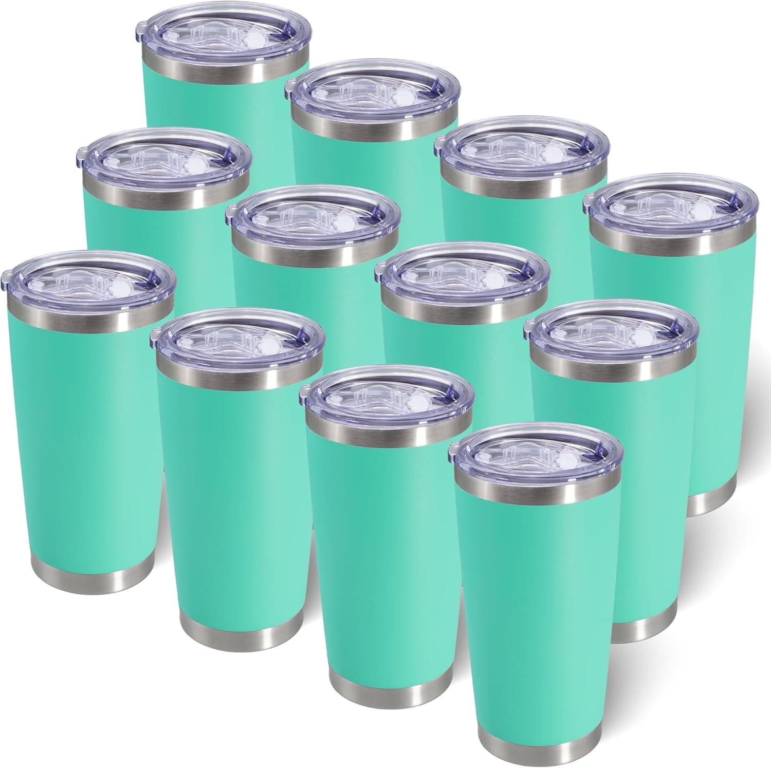 20oz Tumbler Bulk Stainless Steel Tumblers with Lid Vacuum Insulated Double Wall Travel Coffee Mug Powder Coated Tumbler Cup for Hot and Cold Drinks(Light Blue, 12 pack)