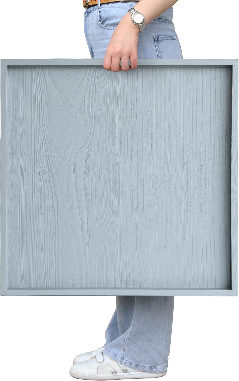 Square Ottoman Table Tray 24" - Rustic Wooden Serving Tray for Farmhouse Decorative Oversized Coffee Table Trays Living Room Kitchen Counter Breakfast Grey