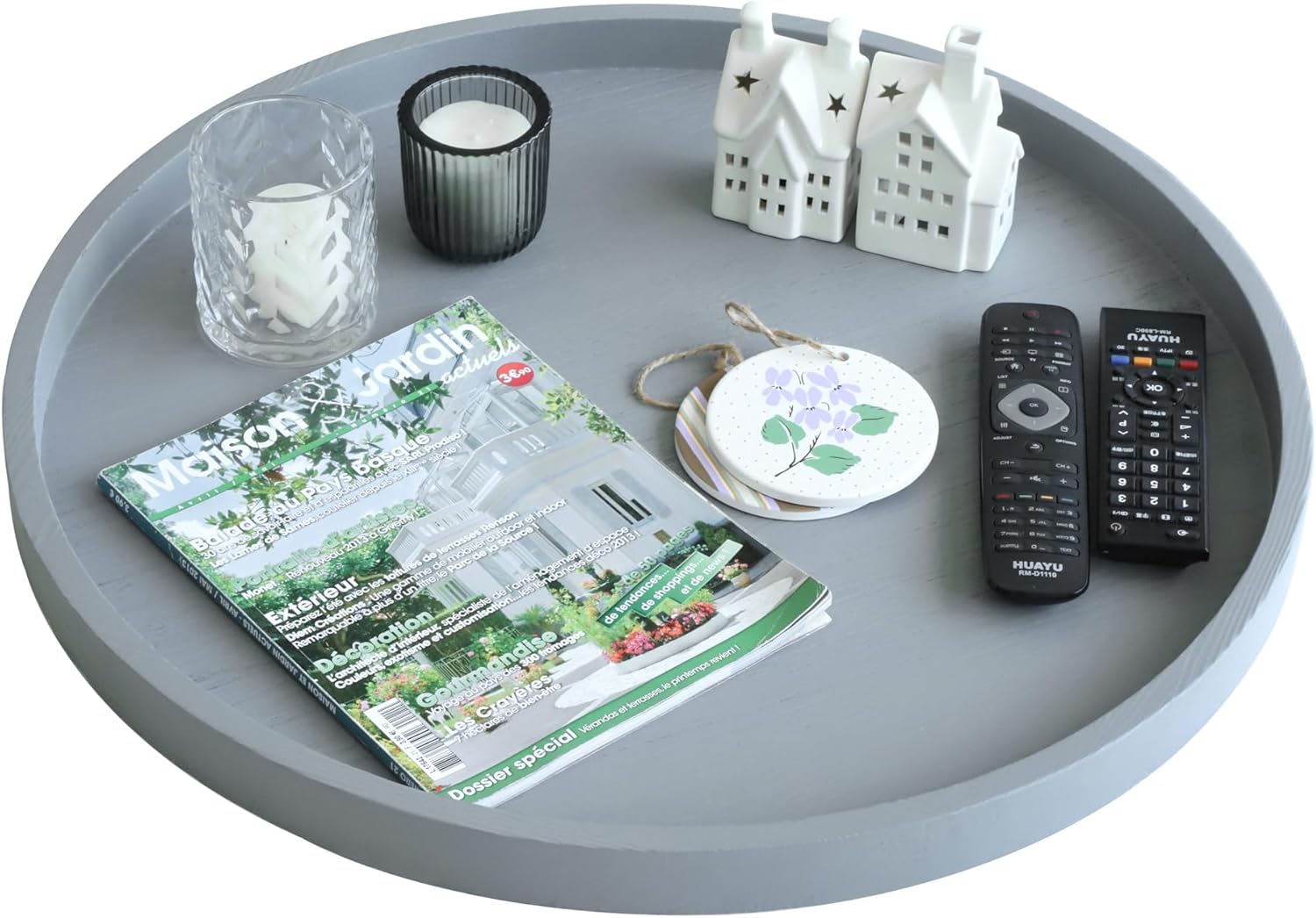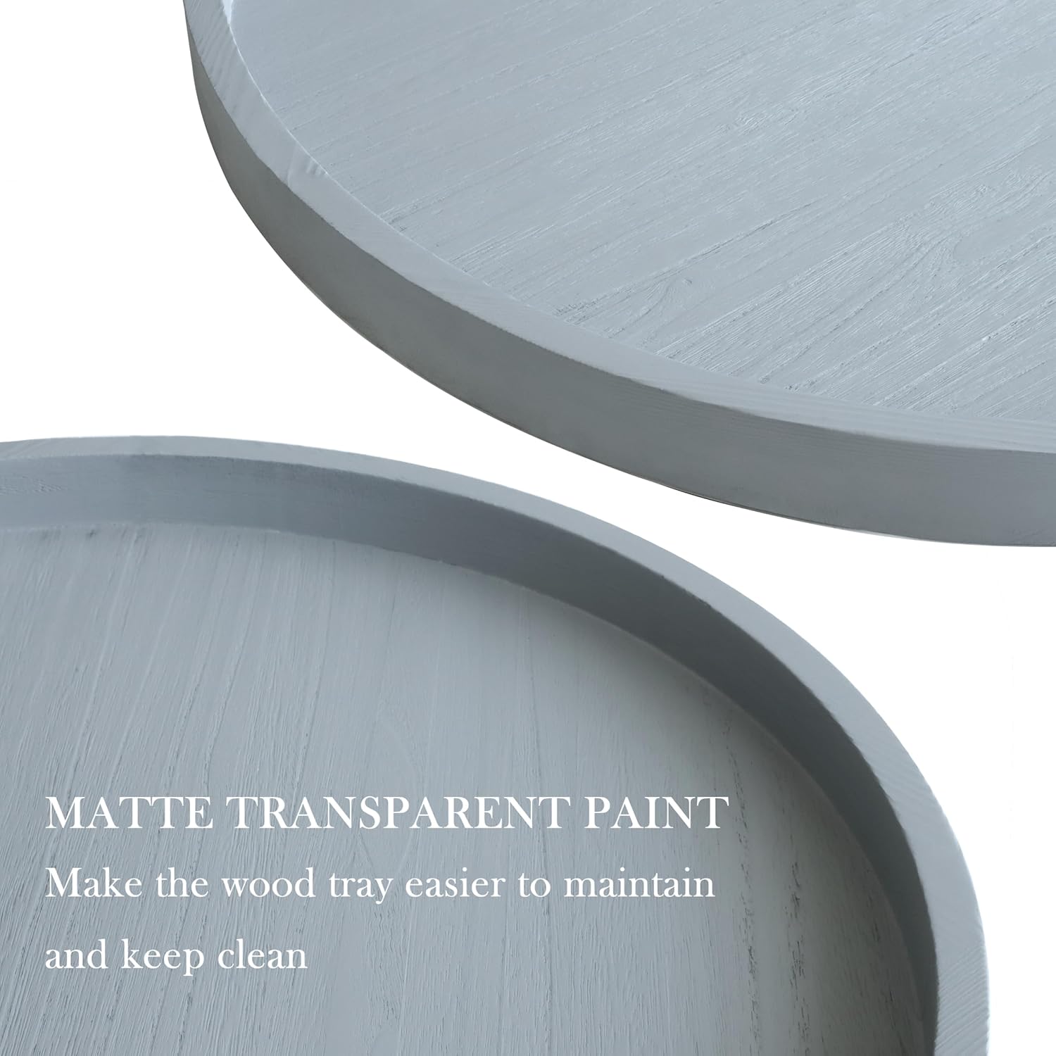 Round Ottoman Table Tray Round-24 - Rustic Wooden Serving Tray for Farmhouse Decorative Oversized Coffee Table Trays Living Room Kitchen Counter Breakfast Grey