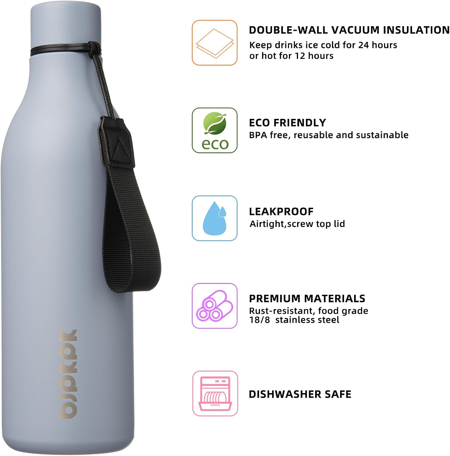 BJPKPK Insulated Water Bottles, 25 oz Stainless Steel Metal Water Bottle with Strap, BPA Free Leak Proof Thermos, Mugs, Flasks, Reusable Water Bottle for Sports & Travel, Mist Grey