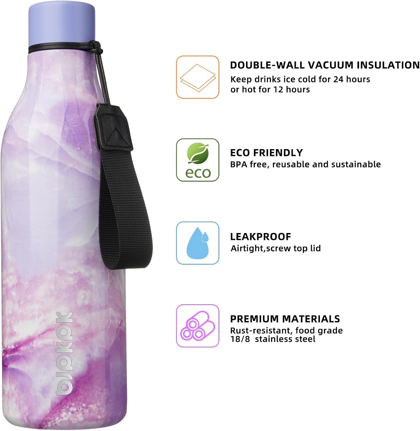 BJPKPK Insulated Water Bottles, 25 oz Stainless Steel Metal Water Bottle with Strap, BPA Free Leak Proof Thermos, Mugs, Flasks, Reusable Water Bottle for Sports & Travel, Dawn