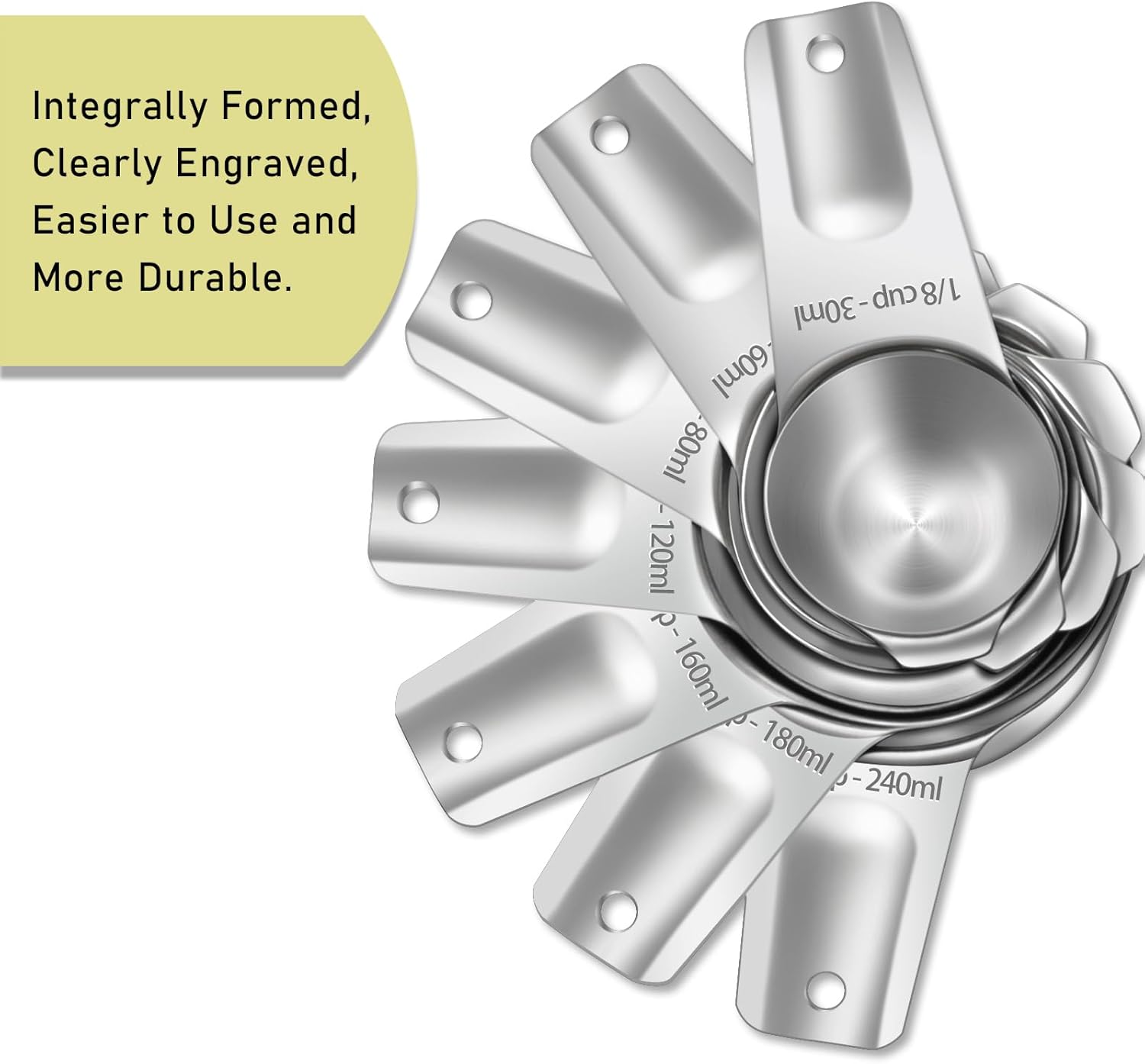 - 【Durable】The integrated molded 304 stainless steel measuring cup is designed for sturdiness and durability, with a solid construction that can withstand regular use without breaking or warping