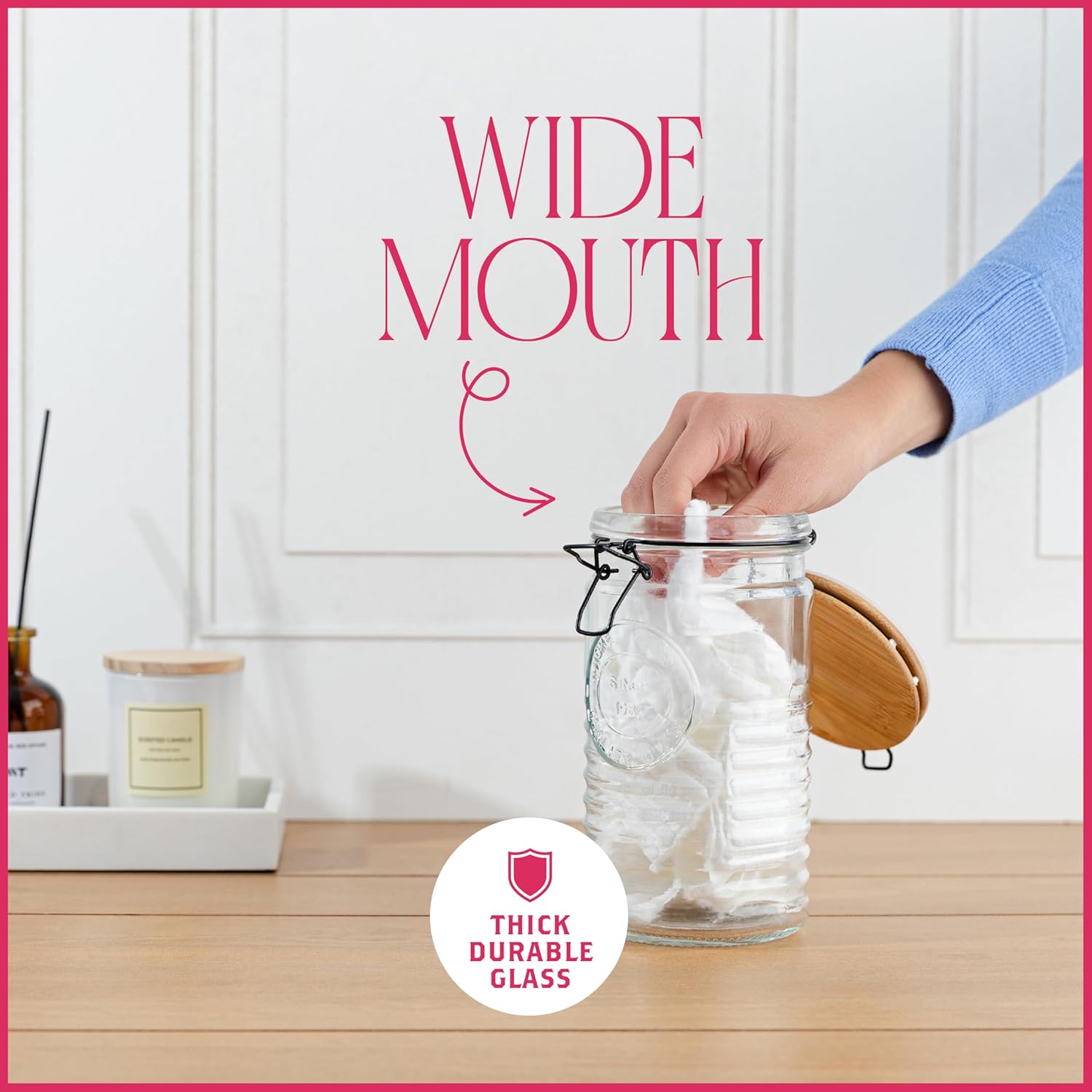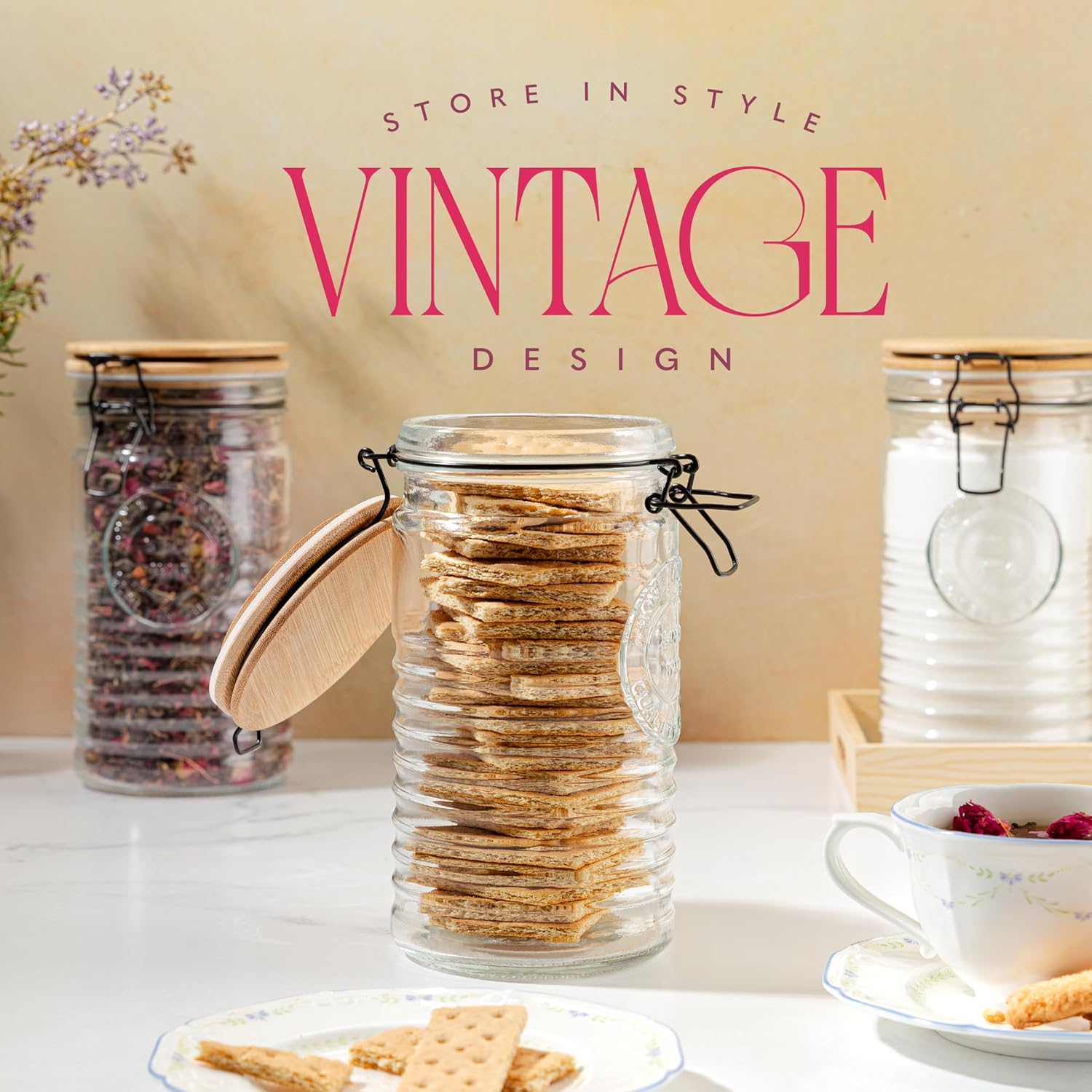 - Secure Sealing: Each jar comes with a secure clasp lid to ensure an airtight seal, extending the shelf life of your stored goods and maintaining their freshness.