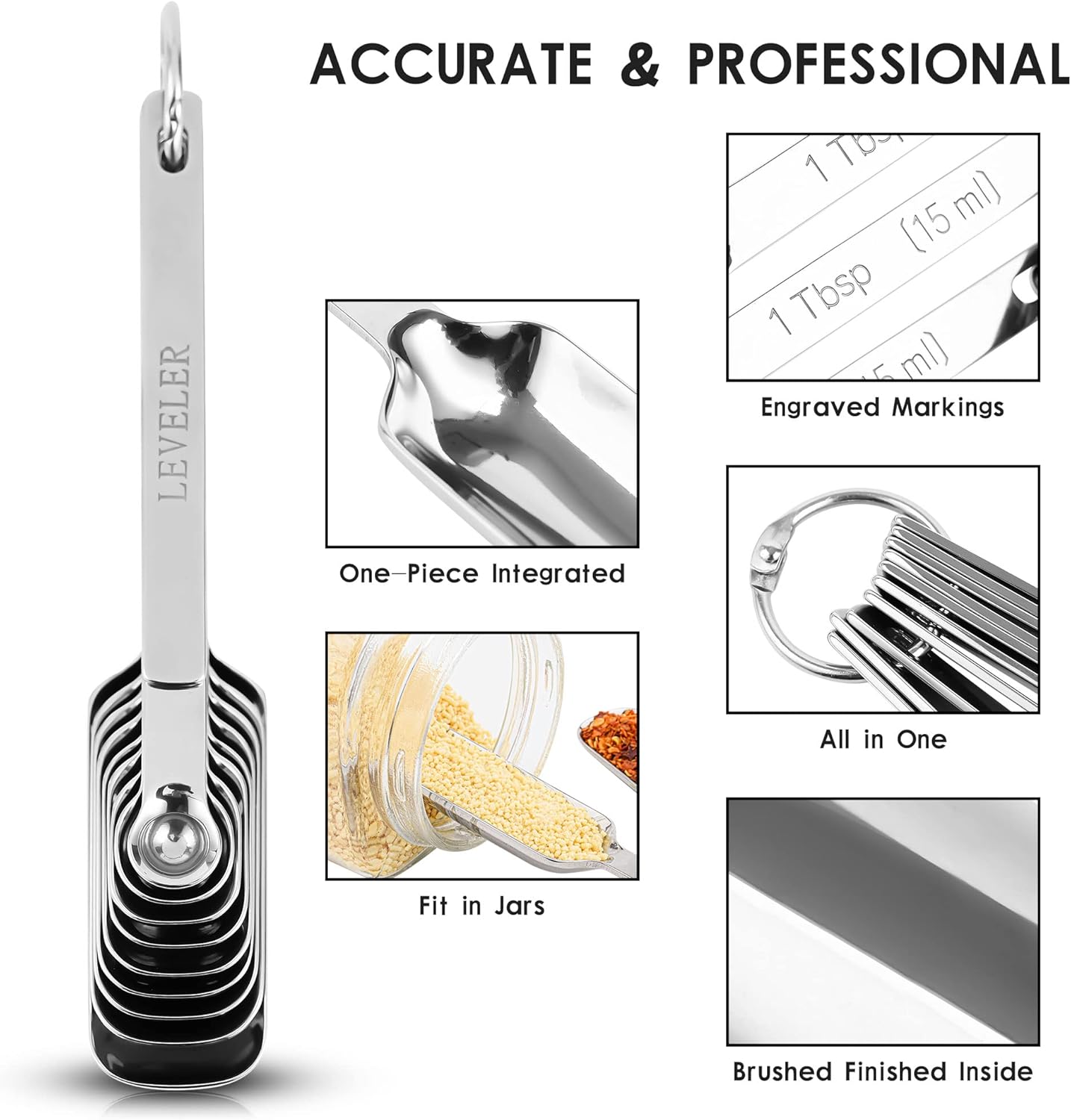 - ▲▲Engraved Measuring Marking: – Every kitchen measuring spoons in this set has the accurate measurements size in Us and Metric engraved on the handle clearly, they are durable and attractive looking will never rub off long lasting and durable and used by professionals.