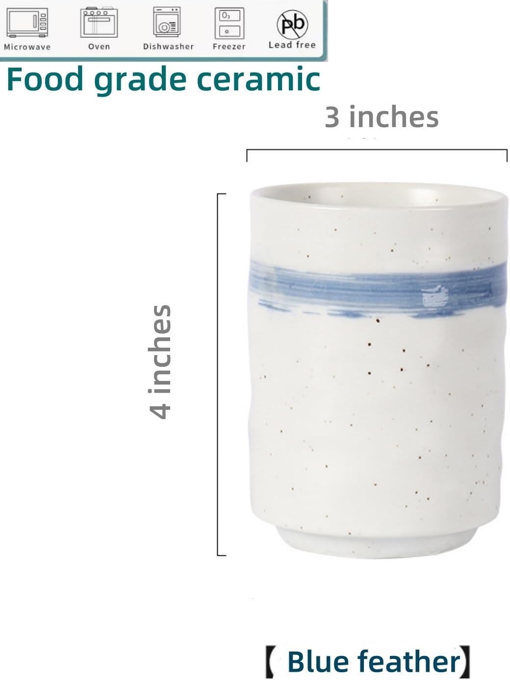 Stoneware Coffee Bar Utensil Holder Tea & Coffee Spoon & Stirrer Holder for Stir Stick Straw Teaspoon Holder Spoon Cup Small Utensil Jar (Blue feather)