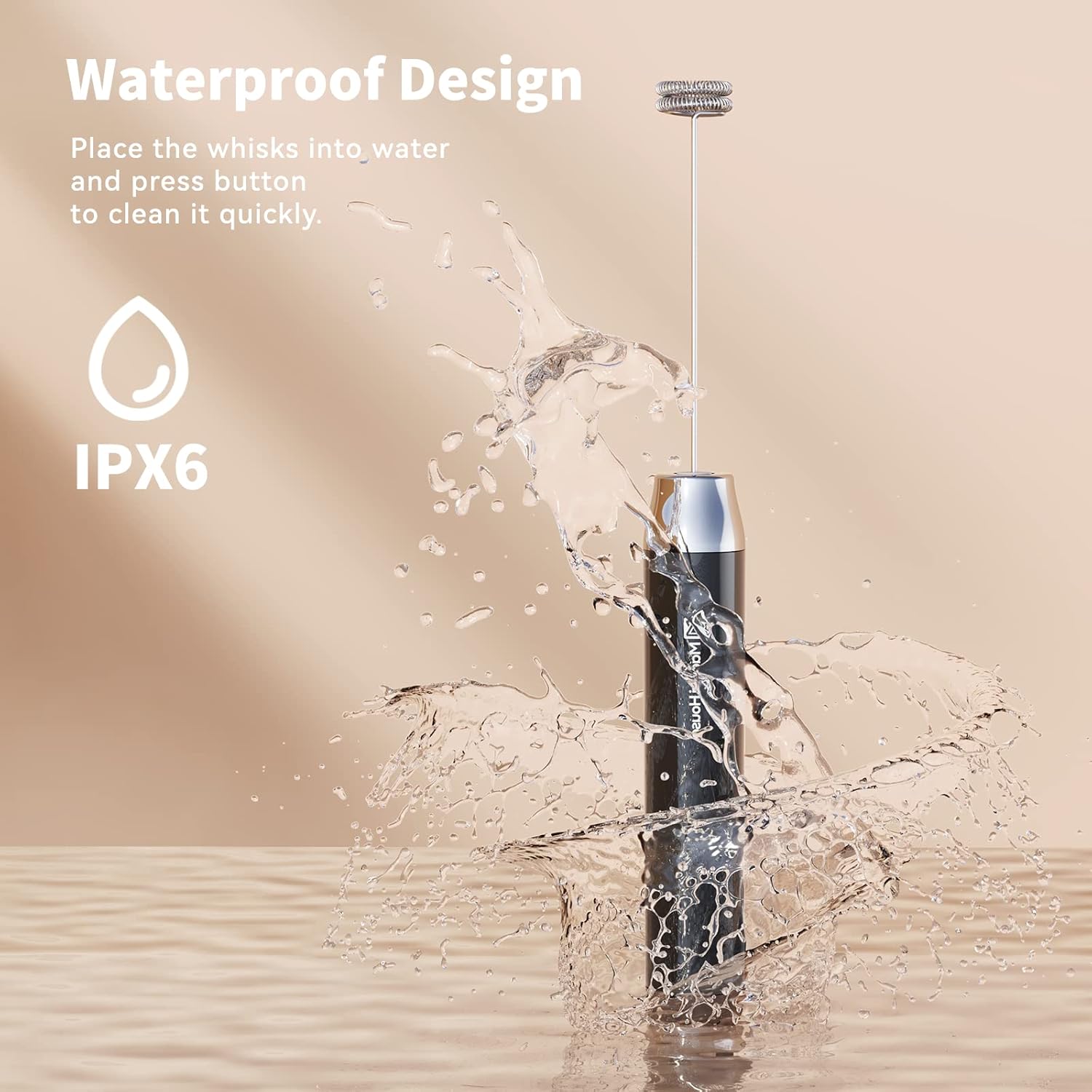 - One-button Operated Design: One press to start the whisking and another press to stop frothing. Just place the LunaFro AS handheld milk frother’s whisk into the container with milk or other liquid food, then press the button to make milk foam, and press the button again to stop working. It’s effortless to clean. Only put the mixing head into water or soapy water, and then press the button to let eddy water current clean it completely.