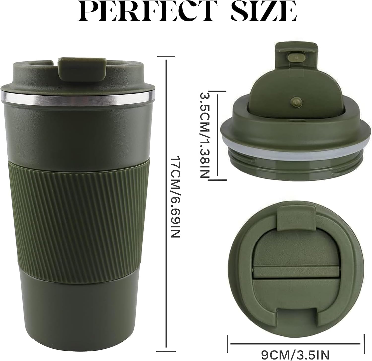 YINBAOGE Insulated Travel Coffee Mug Spill Proof Leak Proof Pobtable To Go Camping Stainless Steel Coffee Tumbler Reusable Coffee Cups with Lids Thermos for Hot and Cold Drink (Green, 17 OZ)
