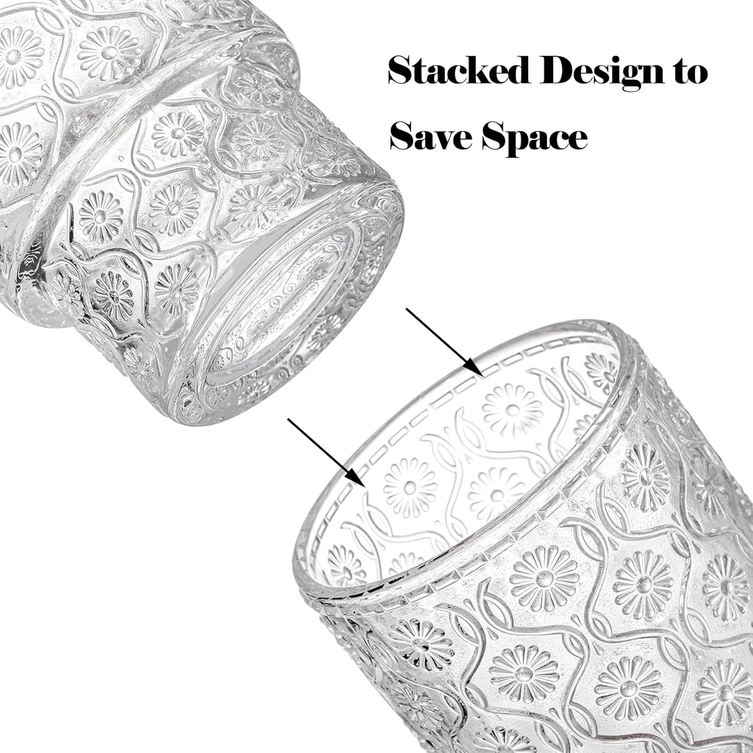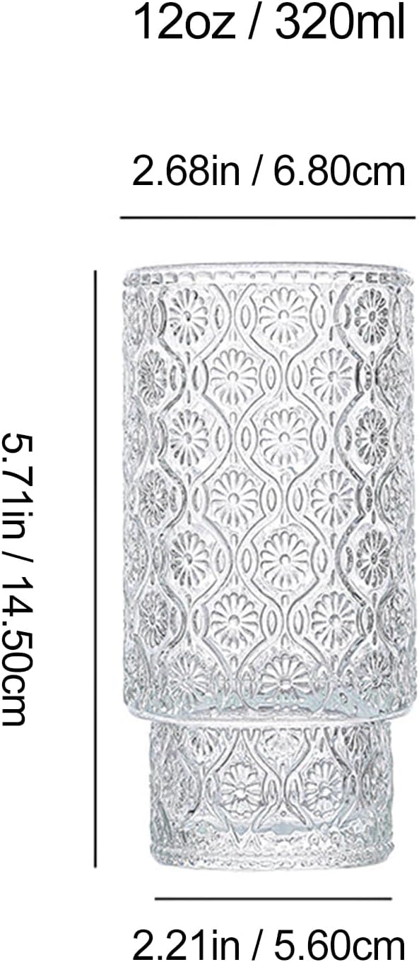 - High quality: The glass cups with lids surface is embossed design, making the glass look more advanced. Glass tumbler are made from food grade materials, made of high quality clear glass, Lead free and BPA free. It can be used safely for a long time. These wine glasses are dishwasher safe. The glass is durable, resistant to fragmentation and breakage, and easy to clean in our dishwasher without worrying about glass damage.