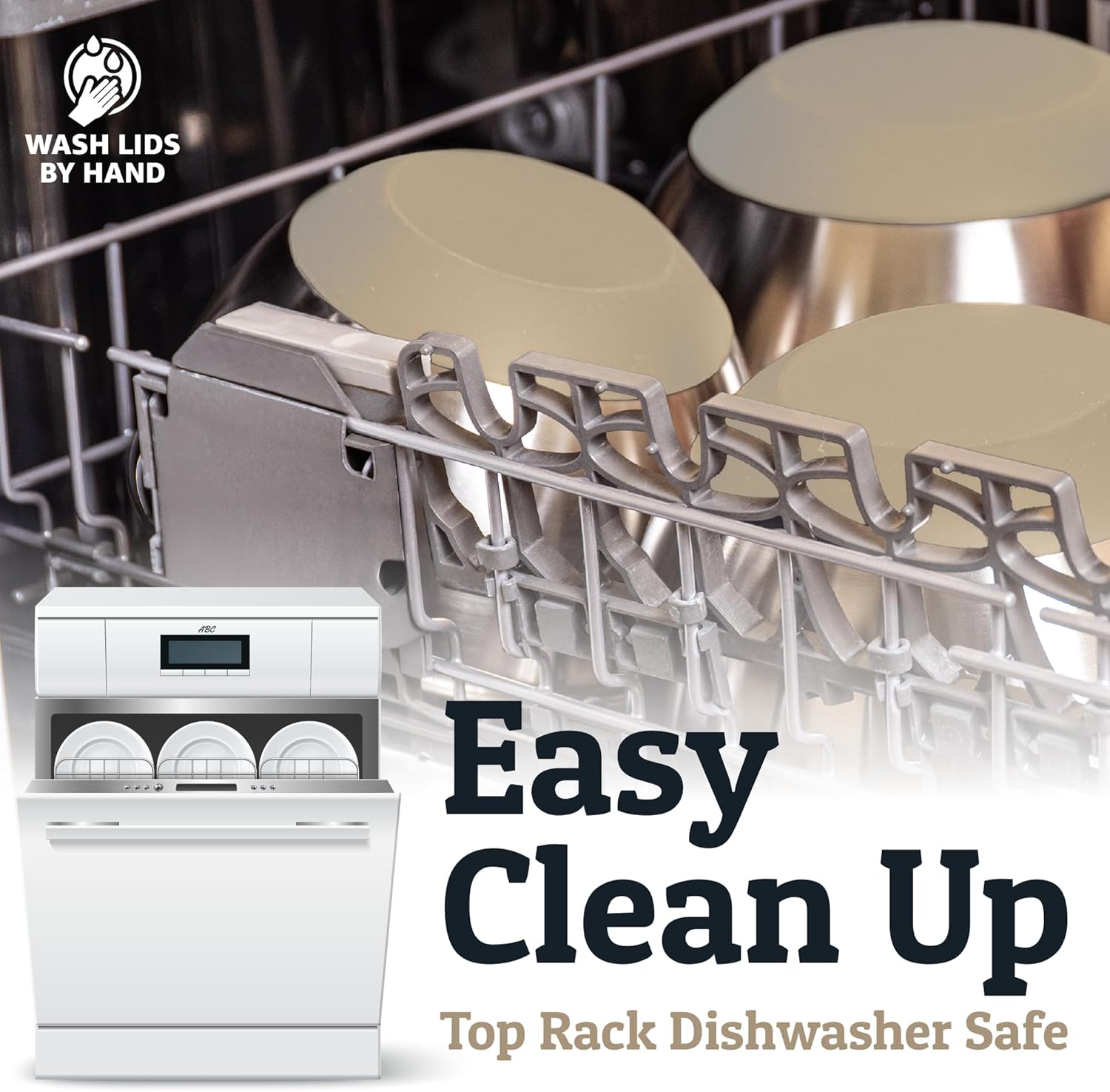 - Top Rack Dishwasher Safe: We value your time in and out of the kitchen. With top-rack dishwasher-safe mixing bowl stainless steel set and easily hand-washable lids, cleaning up is as seamless as your cooking.
