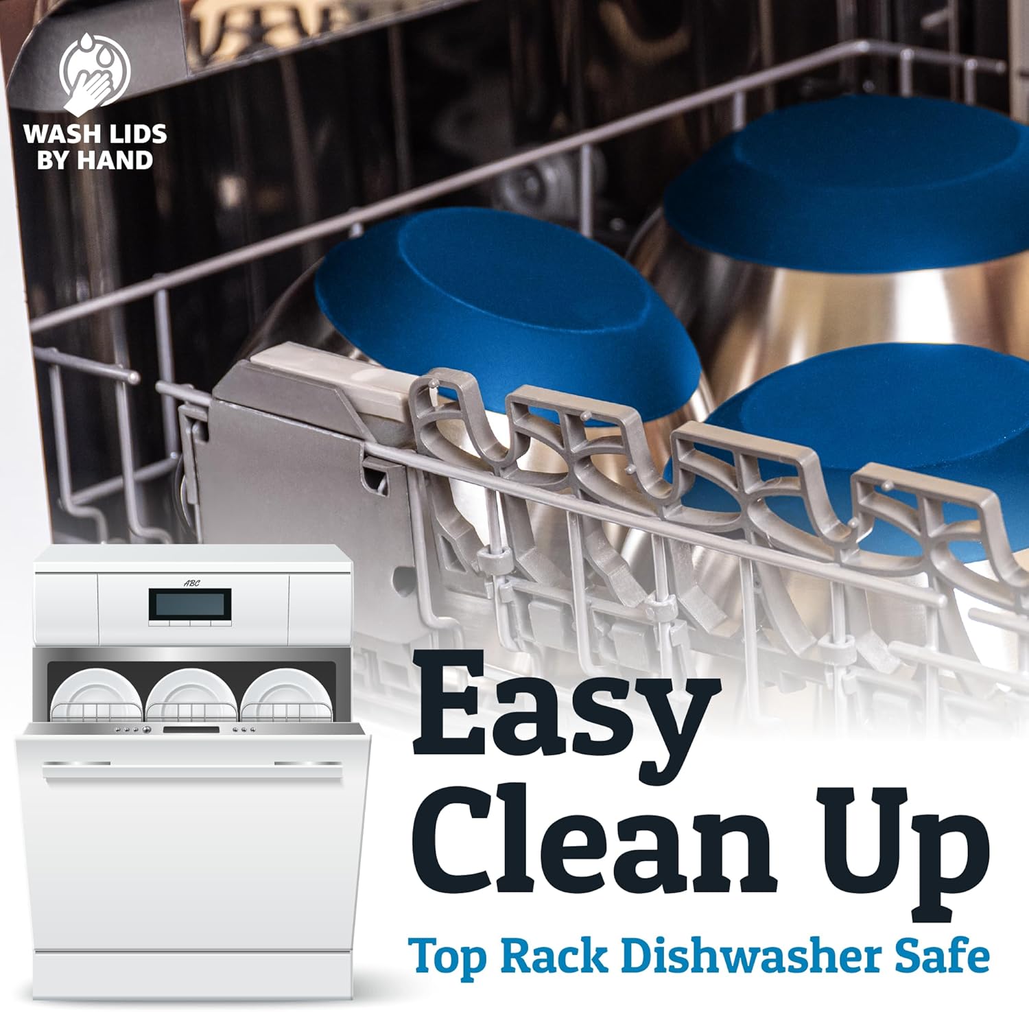 - Top Rack Dishwasher Safe: We value your time in and out of the kitchen. With top-rack dishwasher-safe mixing bowl stainless steel set and easily hand-washable lids, cleaning up is as seamless as your cooking.