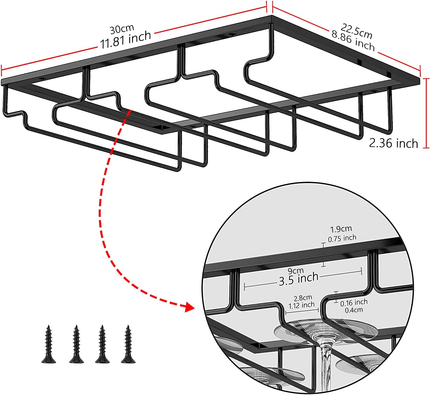 Wine Cup Holder Table Decoration Storage Hanger Metal Organizer for Bar Kitchen Stemware Rack Under Cabinet Stainless Steel Hanger Storage Shelf Black (Black, 3 Rows 2 Packs)