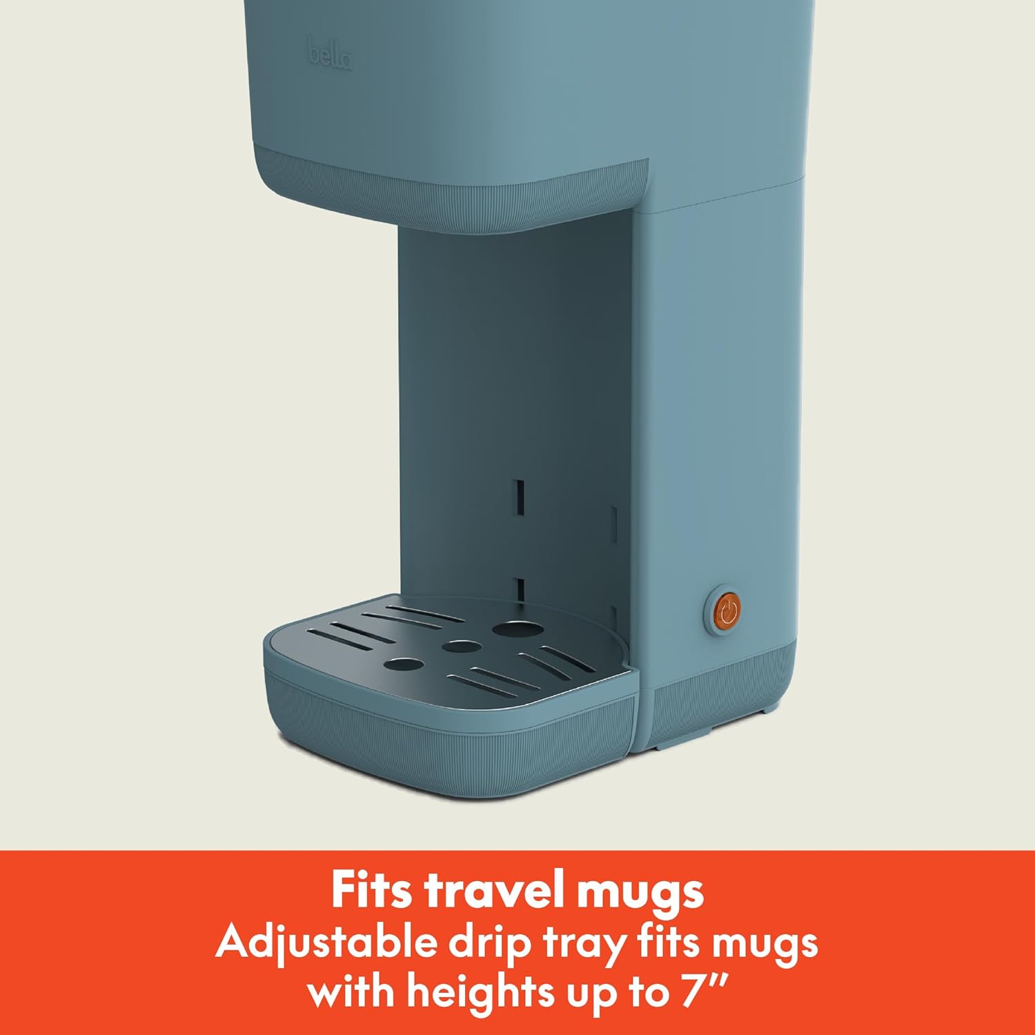 bella Single Serve Coffee Maker, K Cup & Coffee Ground Compatible with Removable, Adjustable Drip Tray, Auto Shutoff & Reusable Dishwasher Safe Accessories, Brews 6oz to 14oz, 1000 Watt, Surf