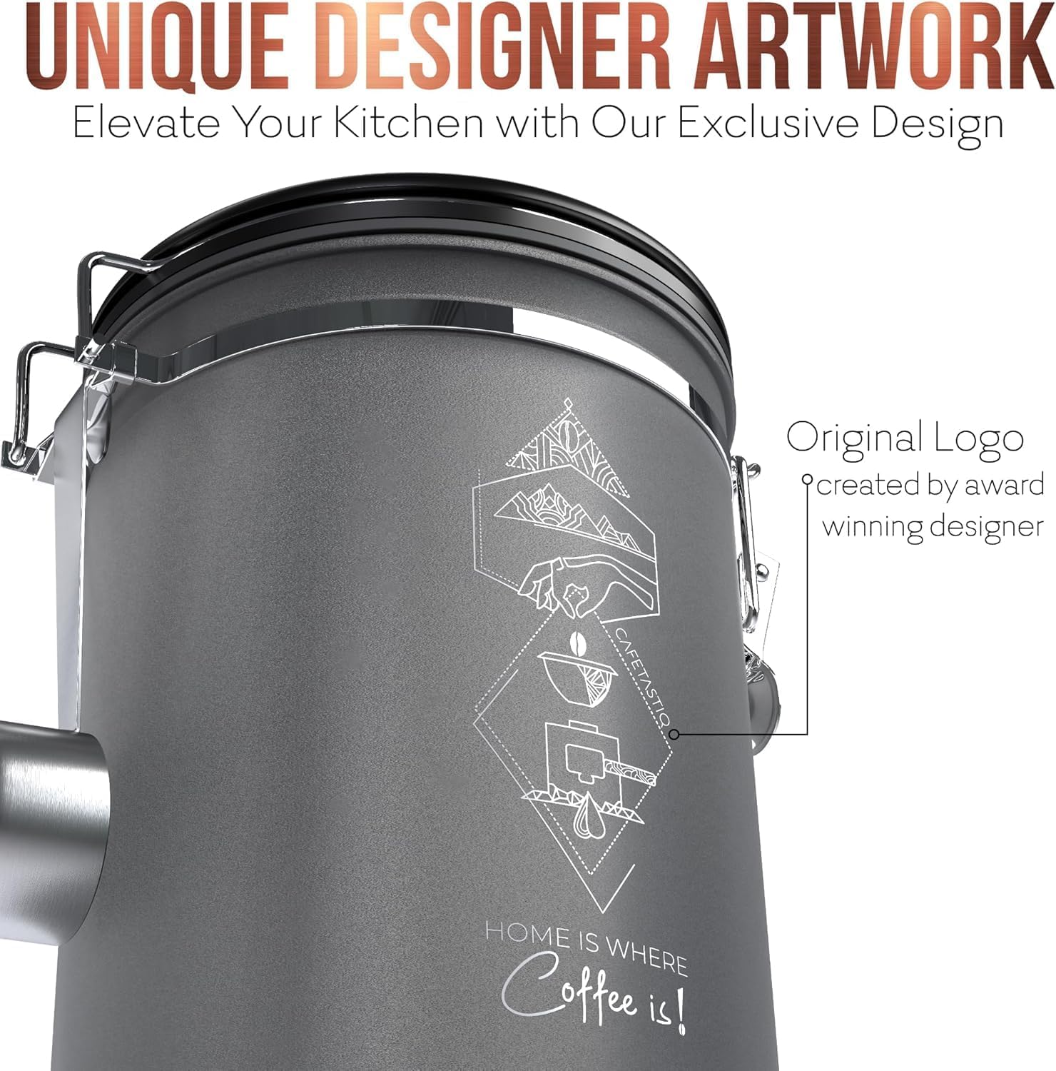 - Designed for Coffee Lovers, Styled for Your Home – Featuring an elegantly crafted, award-winning logo, this coffee canister combines function with style, making it a statement piece in any kitchen.