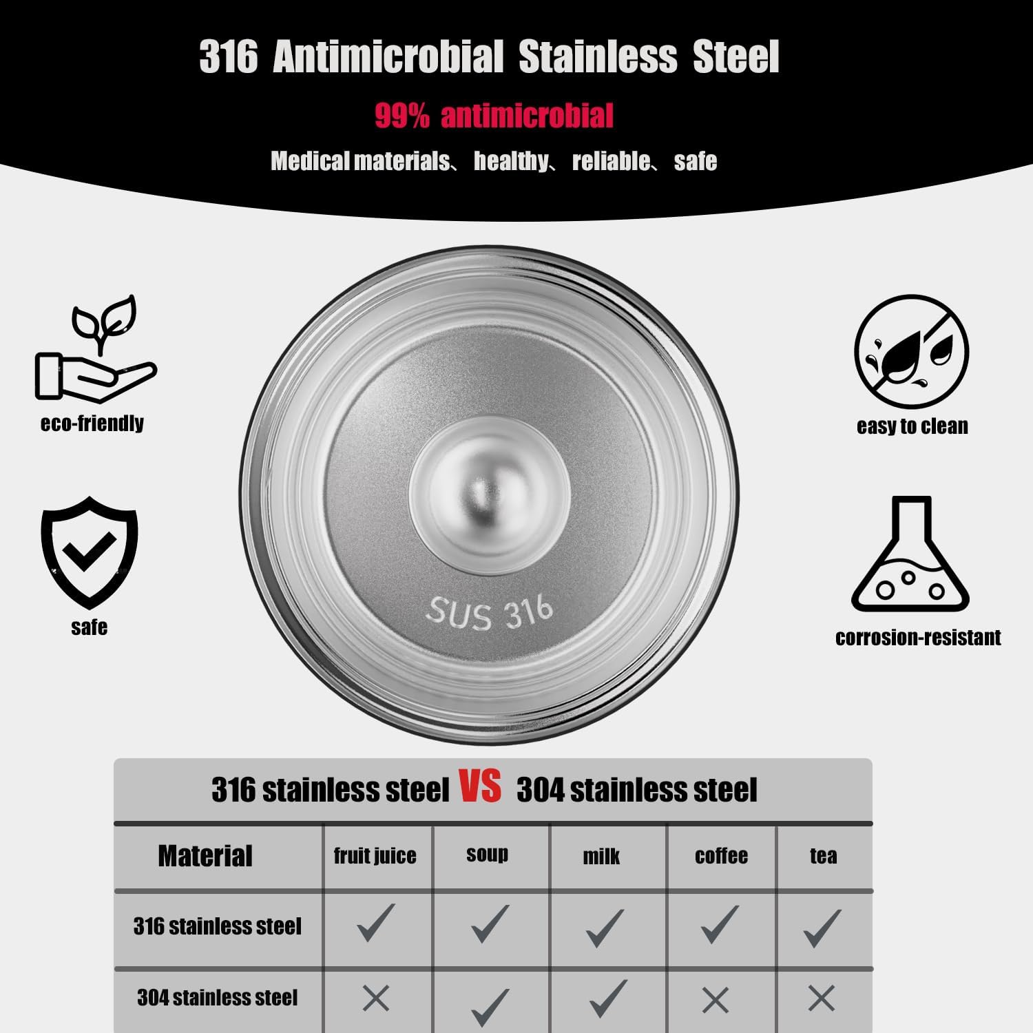 - 👉𝐅𝐨𝐨𝐝-𝐠𝐫𝐚𝐝𝐞 𝟑𝟏𝟔 𝐬𝐭𝐚𝐢𝐧𝐥𝐞𝐬𝐬 𝐬𝐭𝐞𝐞𝐥 𝐦𝐚𝐭𝐞𝐫𝐢𝐚𝐥,𝟏𝟎𝟎% 𝐁𝐏𝐀 𝐟𝐫𝐞𝐞:Our coffee cup is made of superior and safest 316 stainless steel, surpassing other stainless steel options. This is an eco-friendly material free of harmful substances like BPA, ensuring the safety and health of your beverages. Additionally, this stainless steel material boasts excellent durability, making it reusable and helping to avoid environmental pollution.