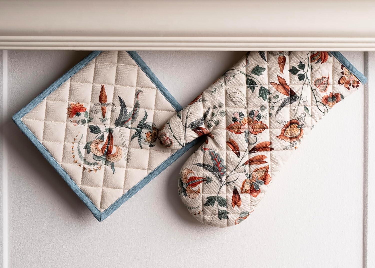 - Artistic style: Add charm to your kitchen with our oven mitt pot holder set featuring watercolor designs inspired by traditional European motifs. Stylish and functional kitchen accessories for every home cook or gift occasion.