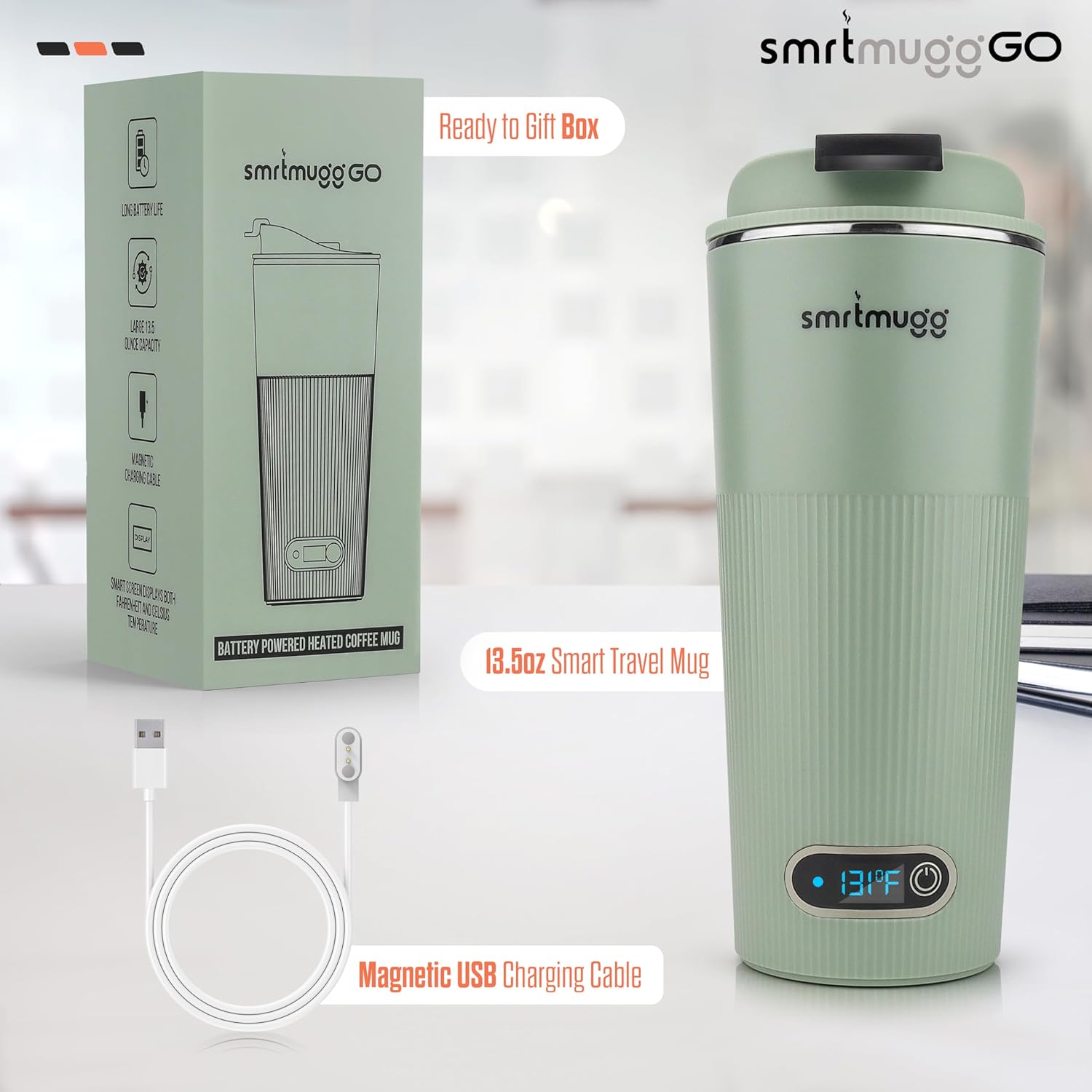 - ✅ Charging is a snap! Simply snap on the included magnetic charging cable and your SmrtMugg Go will begin charging.