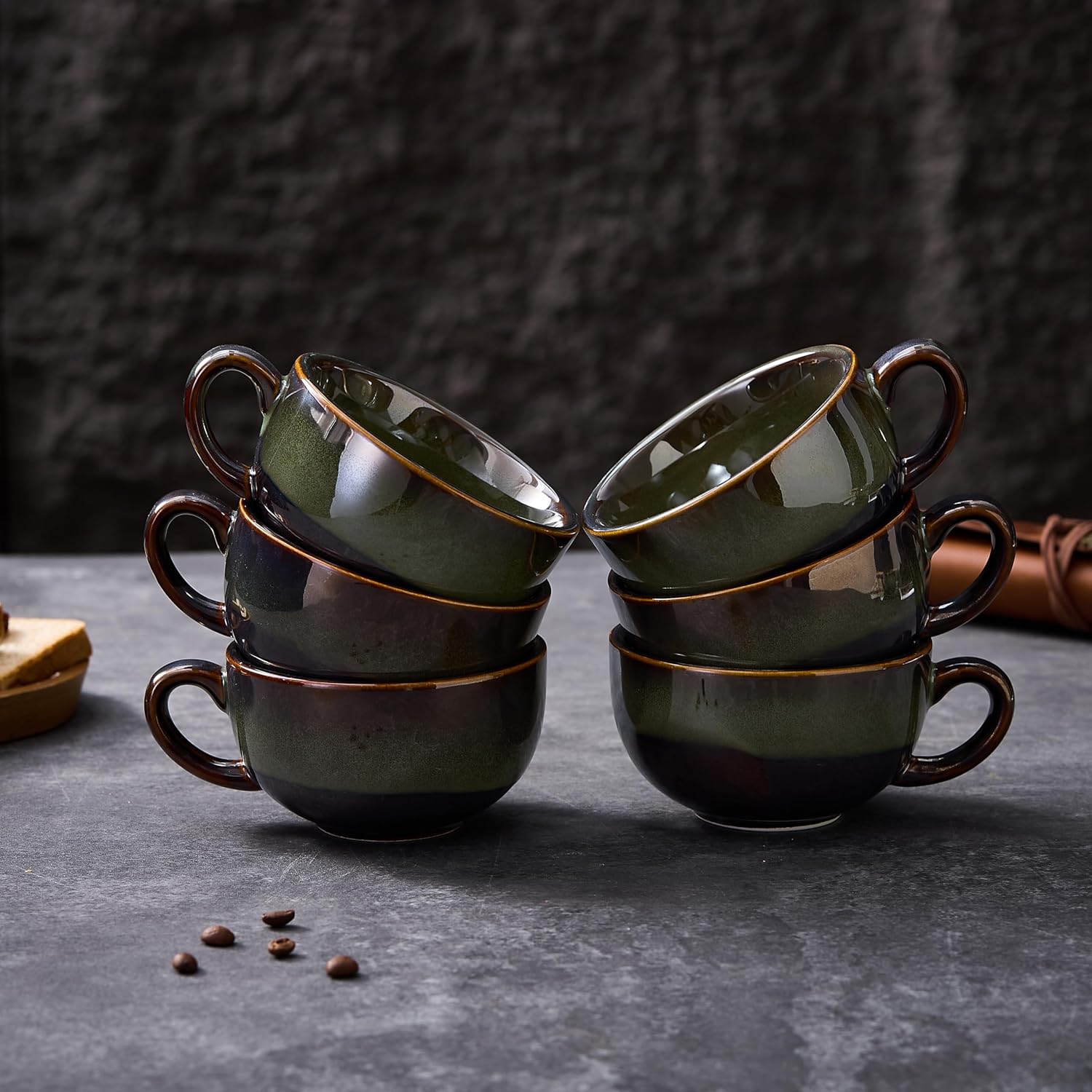 Set of 6 Vintage Design 12 oz Professional Barista Ceramic Latte Art Cappuccino Cups Set (Sea Grey * 6)