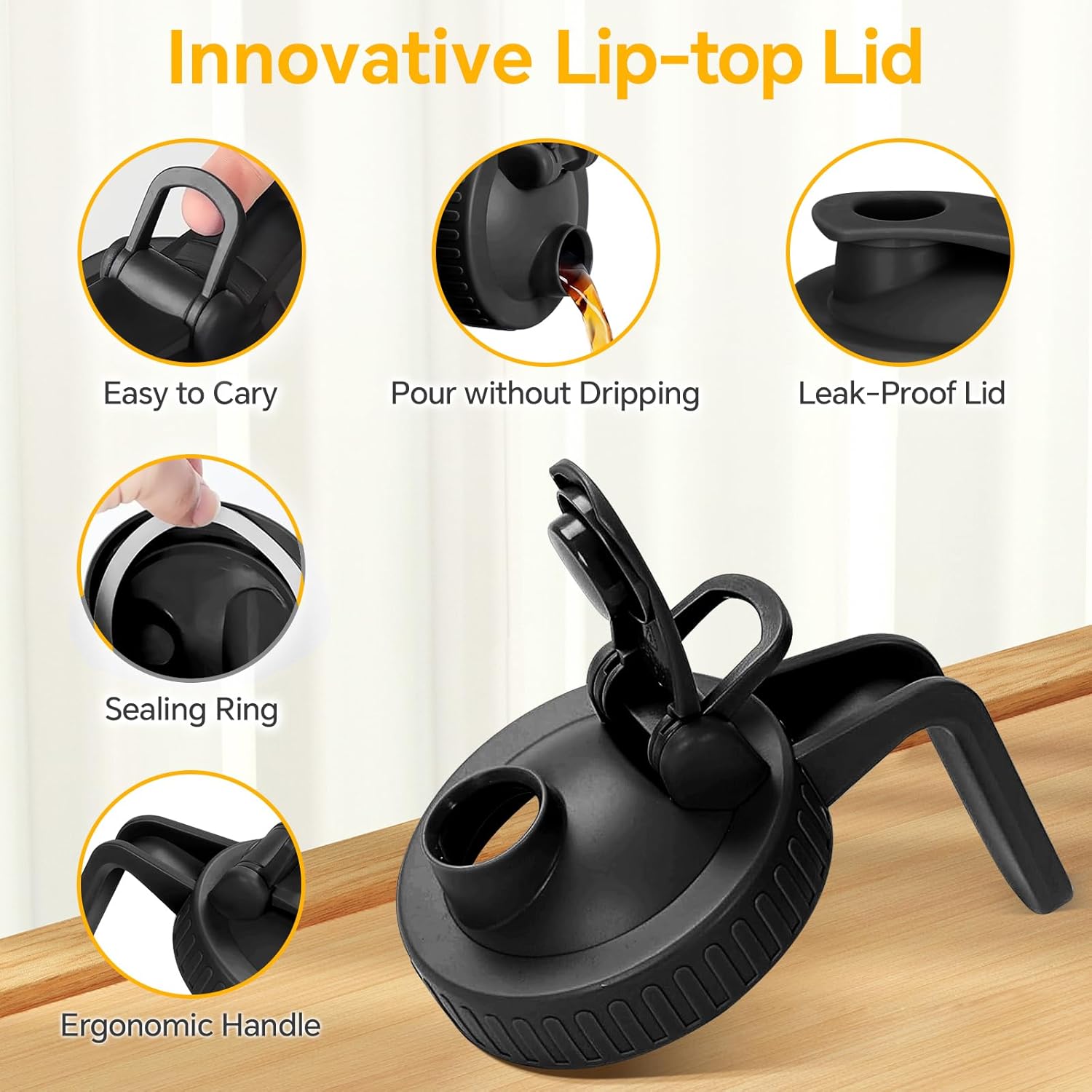 Mason Jar Pitcher, 32 OZ Glass Pitcher with Lid Double Leak-proof with Handle Water Jug Wide Mouth Breast Milk Pitcher Fridge Container for Water, Juice, Iced Coffee, Tea, Juice - Black