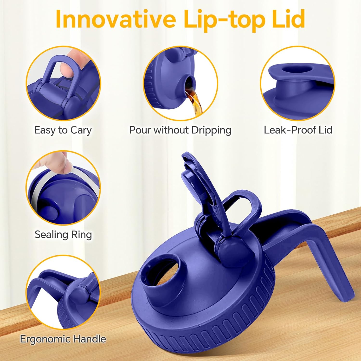 Mason Jar Pitcher, 32 OZ Glass Pitcher with Lid Double Leak-proof with Handle Water Jug Wide Mouth Breast Milk Pitcher Fridge Container for Water, Juice, Iced Coffee, Tea, Juice - Blue