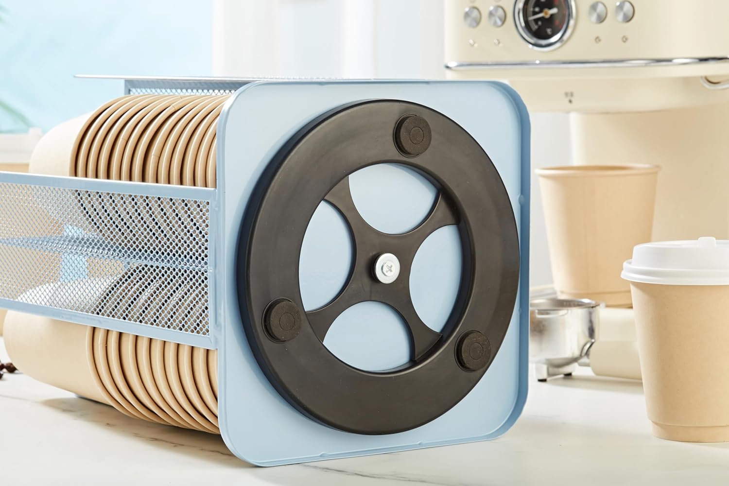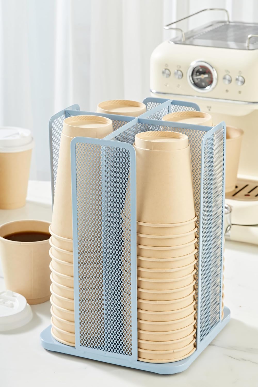 - Rotating Design: With a 360-degree rotating base, for easy access to cups from any angle, making it convenient for busy environments.
