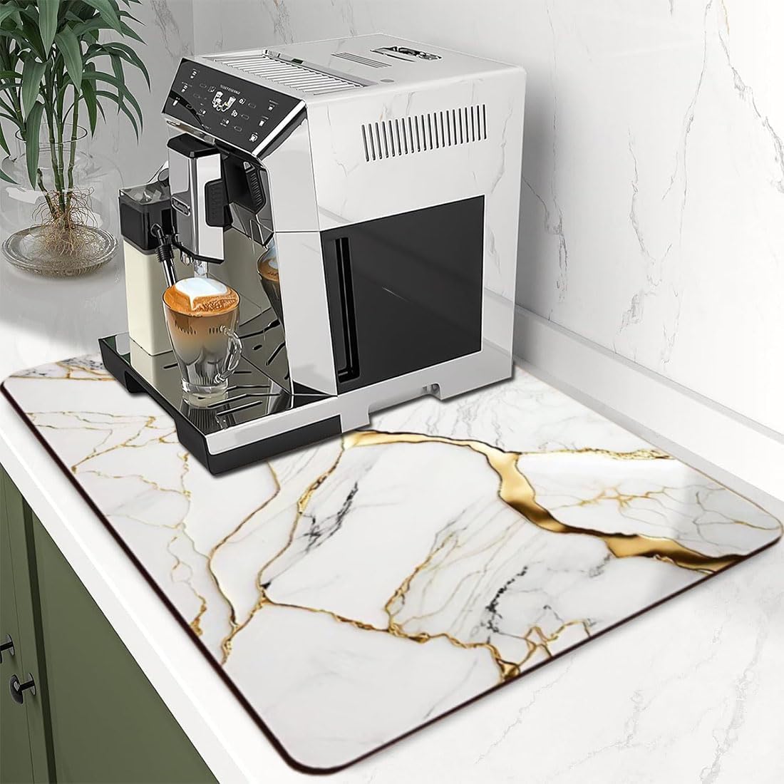 Coffee Mat or Dish Drying Mat Super Absorbent Drying Marble pattern Mat, Fit Under Coffee Maker Espresso Machine Absorbent Hide Stain Rubber Backed Dish Drying Mat for Kitchen Counter (12″x 20″white)