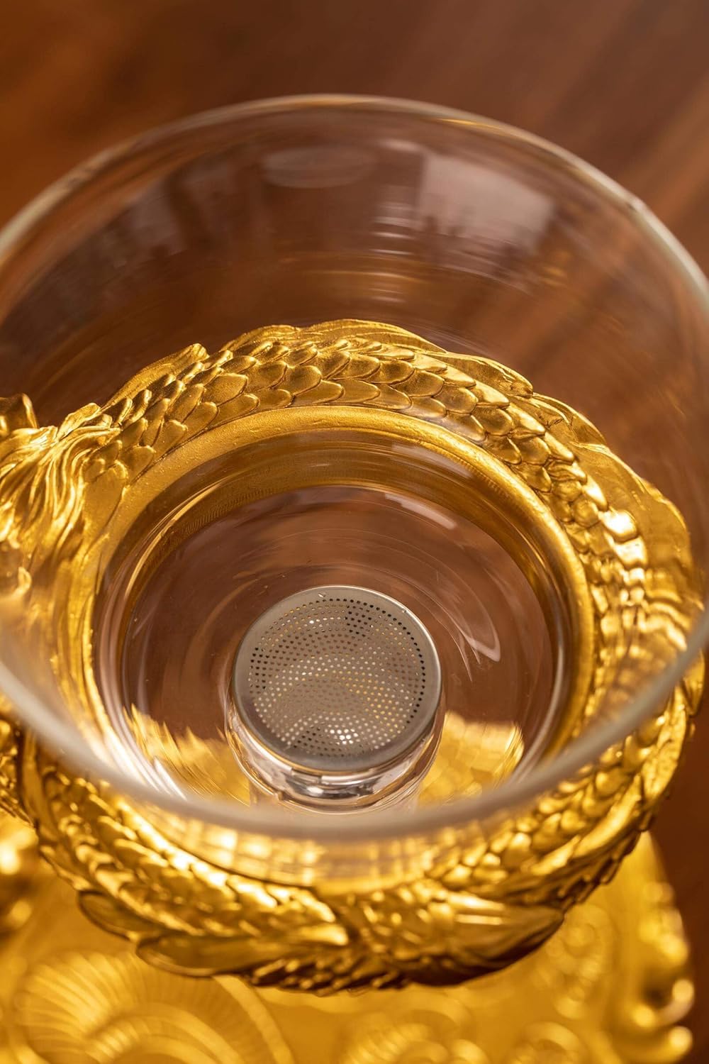 Glass Teapot Set with Infuser Semi Automatic Dragon Tea Set (Golden teapot)