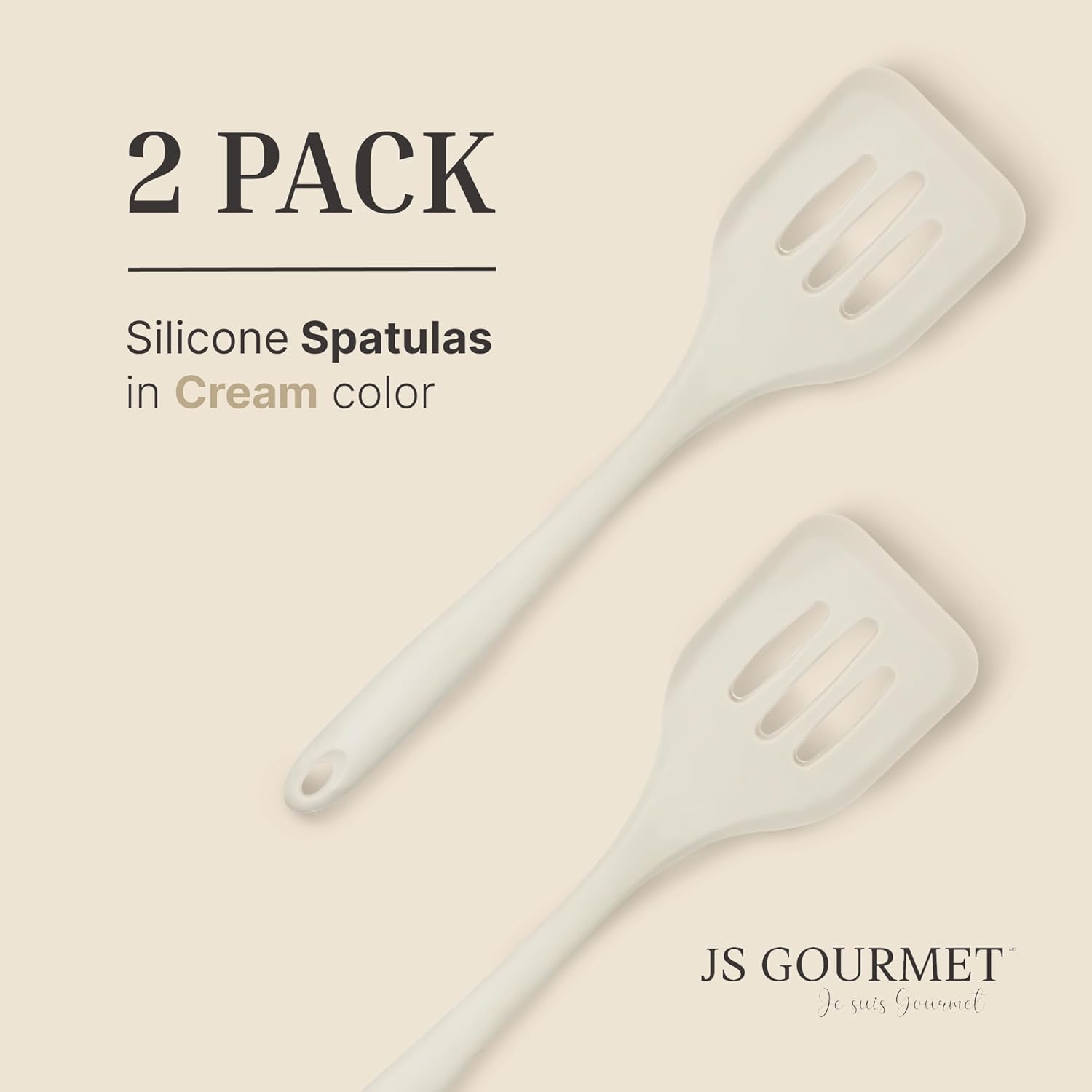 Silicone Slotted Turner Set – 2-Piece Set of Turner Spatulas for Eggs and Pancakes – Kitchen Tools and Accessories with Comfortable Handles, Heat-Resistant Utensils for Cooking & Baking – Cream