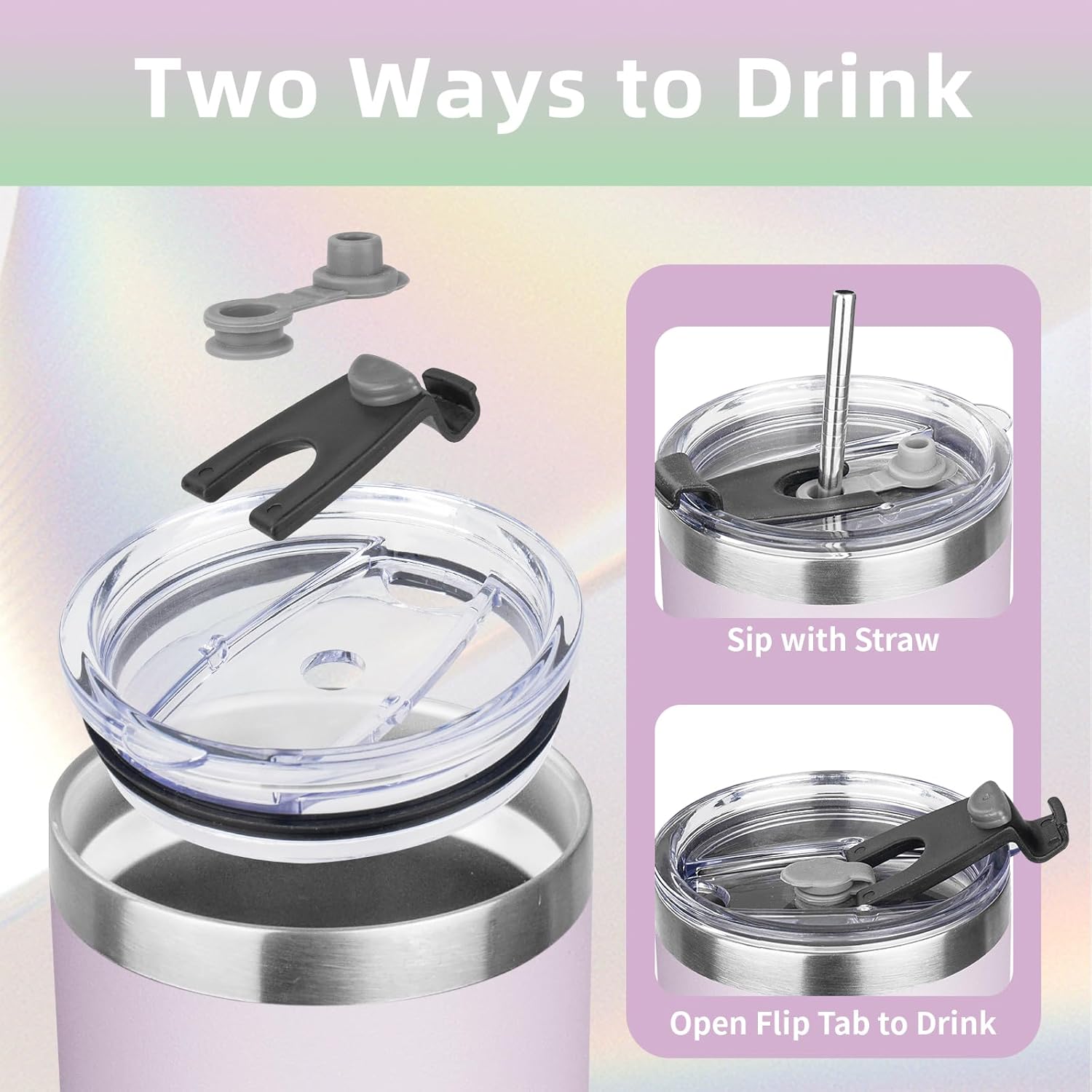 - ✨【Spill-proof Lid】: The lid of the thermos cup is made of unique sealing technology, basically no leakage if you move it at any angle; If the cup is filled with hot water, please open one of the drinking holes first, so that the lid will be easier.