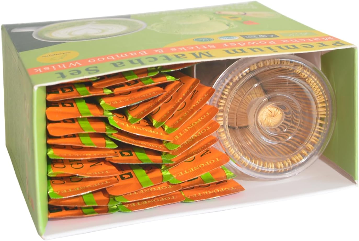 Mini Matcha Tea Set-Ceremonial Organic Japanese Matcha Powder With 30 single-serving sticks and Handmade Bamboo Whisk
