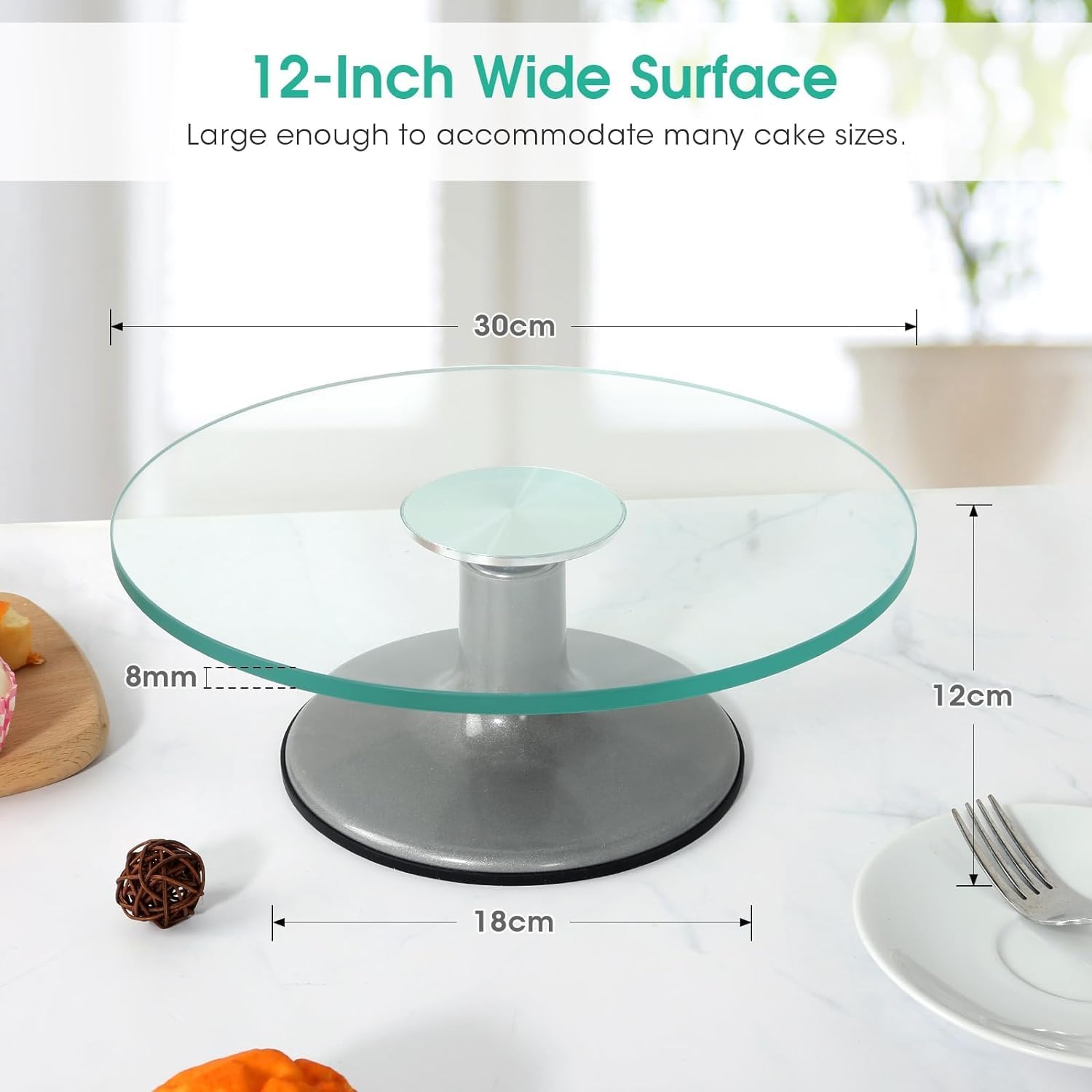 - 【High Quality Material】: The professional cake turntable countertop is made of thickened 8mm tempered glass, and the base has a built-in steel plate, which has excellent durability and can meet the needs of daily cake making.