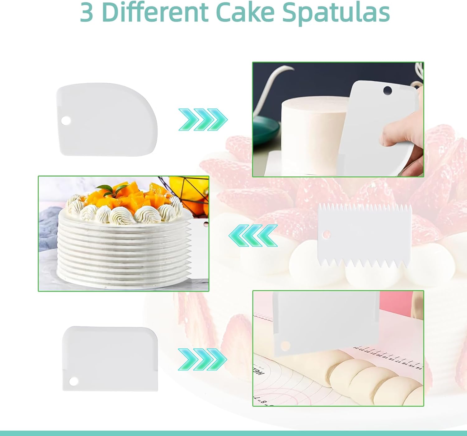 - 【Quiet and smooth rotation】:The rotating cake stand adopts high-speed silent bearings, and the 360° rotation is stable and not stuck. The base is made of silicone non-slip mat, which is easier to absorb on the desktop and can prevent the turntable from sliding during the cake making process.