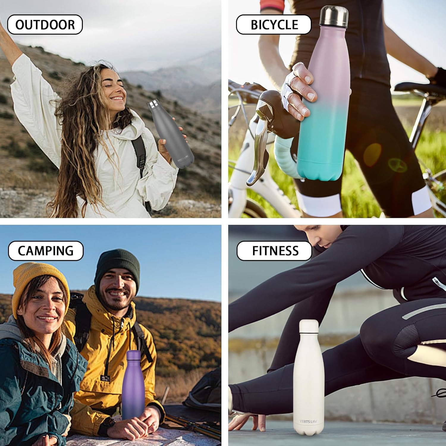 - COLORFUL & UNIQUE:Powder coating is the pinnacle of water bottle exteriors. Choose from a range of vibrant colors to match your personality and style. The Stainless Steel Metal water bottle is crafted with fashionable color powder coating, will not be scattered, discolored and difficult to scratch. Available in 9, 12,and 17-ounce sizes,making it easy to find the perfect size for your needs.