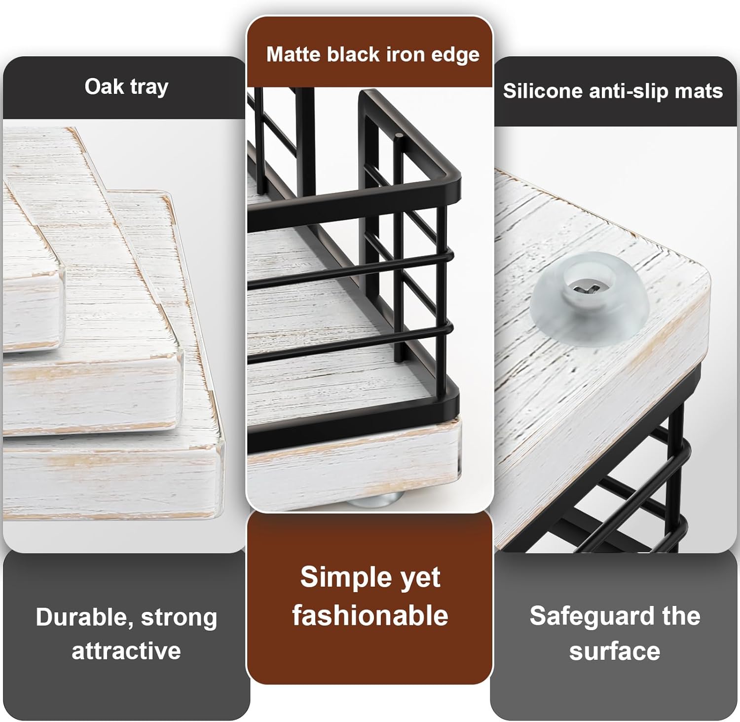 - Cost-effective: No assembly required, easy to clean. The tray crafted from iron and oak is simple and attractive. The solid bottom ensures items won't fall. With silicone non-slip pads, it provides both anti-slip functionality and better protection for surfaces