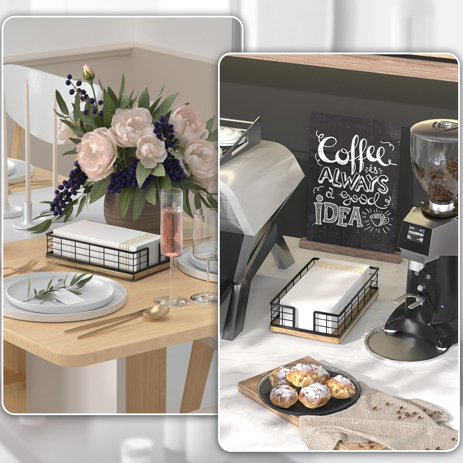 Wican Guest Towel Holder Tray for Bathroom, Oak and Iron Napkins Holder for Powder Room Dinning Table Wooden Basket for Disposable Paper Hand Towels Black and Farmhouse Brown
