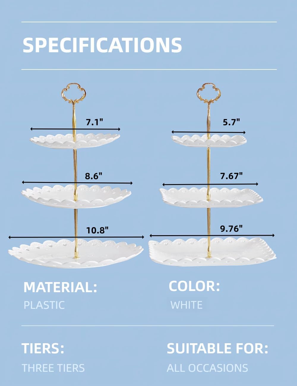 - Multipurpose serving use for all events such as tea party, wedding, baby showers, Christmas, thanksgiving, candle light dinner party or for home decor