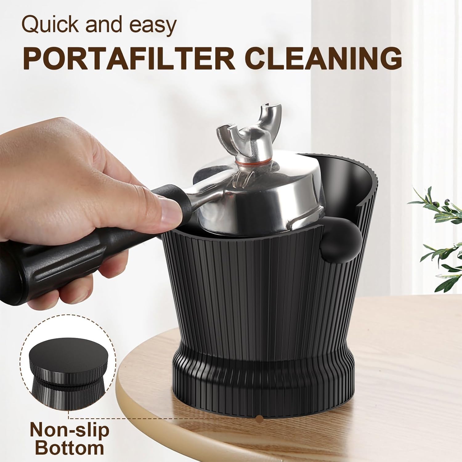 - PERFECT SIZE: Prevent coffee grounds from splashing with this espresso knock box, Protect your portafilter and hands with shock-absorbent knock box.