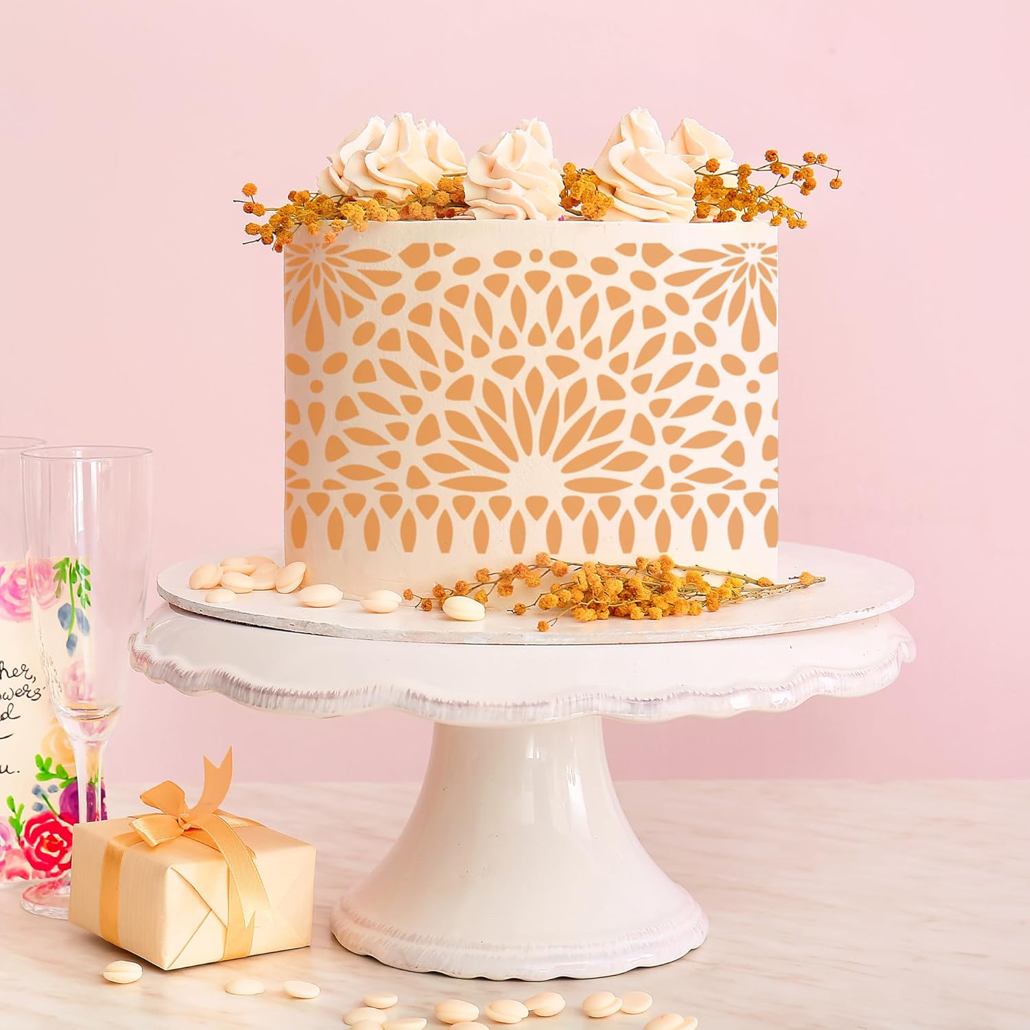 - Cake Stencils for Buttercream: You will find roses, leaves, vine, wheat, mandala and brick pattern on these cake decorating stencils. You can use these stencils make cookies, cake chocolate decoartion etc.