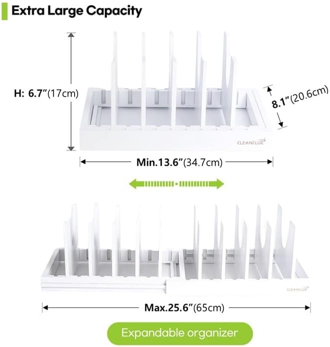 - Efficient Lid Storage - Featuring deep U-shaped dividers, this organizer provides an efficient solution for storing pots and lids with knobs, keeping them easily accessible and neatly organized