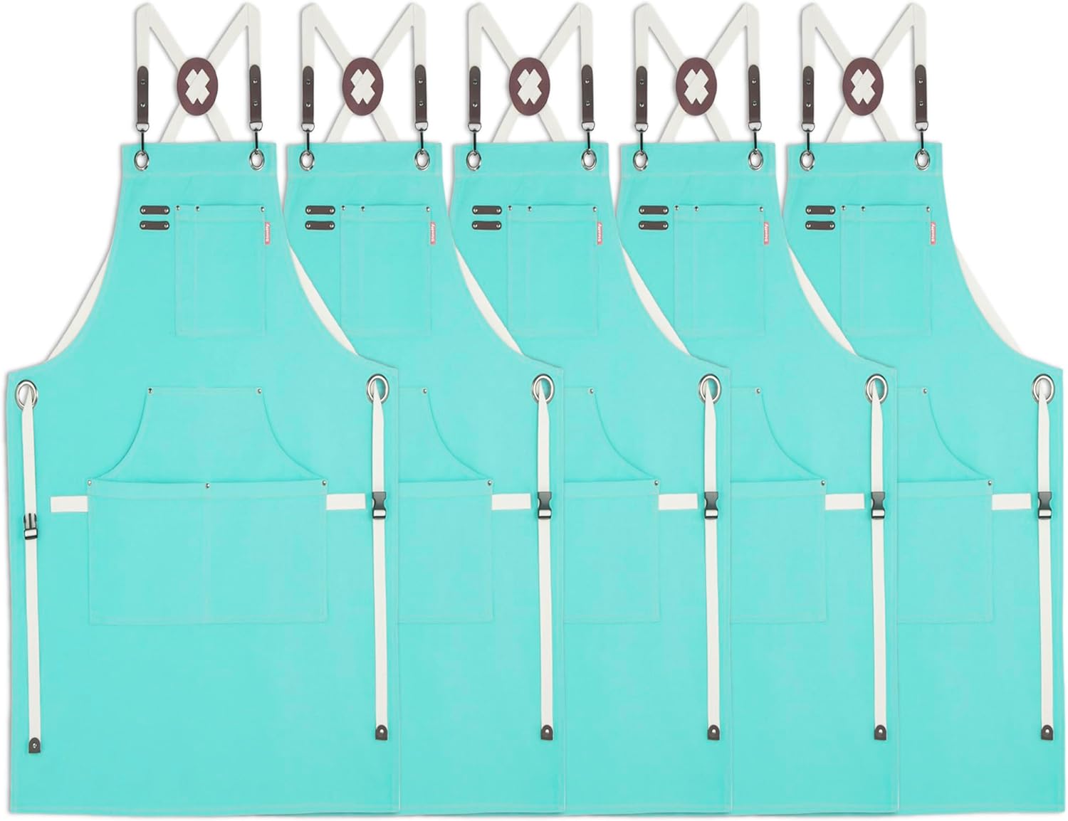 5 Pack Kitchen Apron, Work Apron, Canvas, Multiple Pockets, Gardening, Painting, BBQ, Artist, Carpenter, Sizes M to XXL, Ice Blue