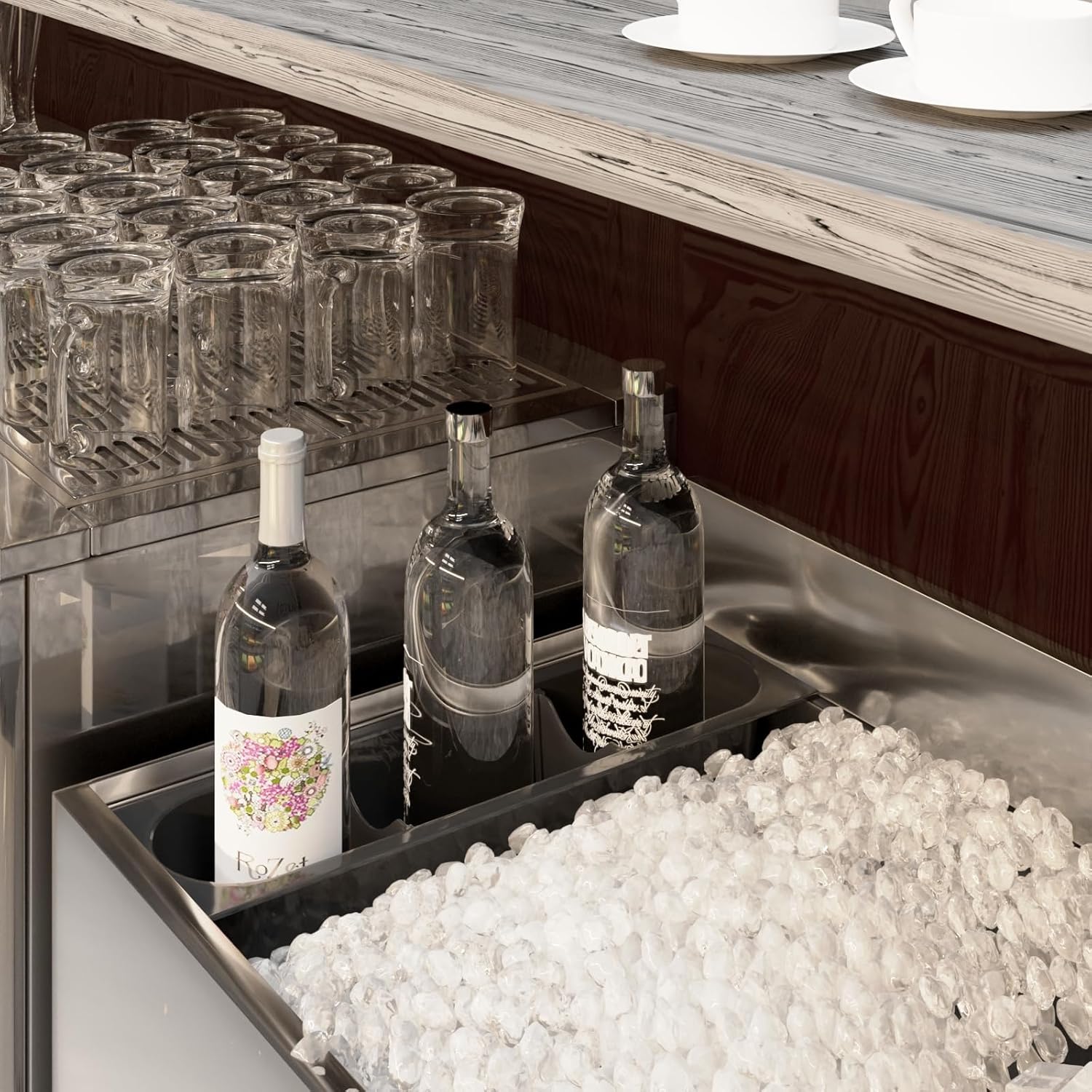 - Integrate Seamlessly: The bottle holder is designed to integrate seamlessly with most ice bins, providing a tidy solution without requiring new equipment.