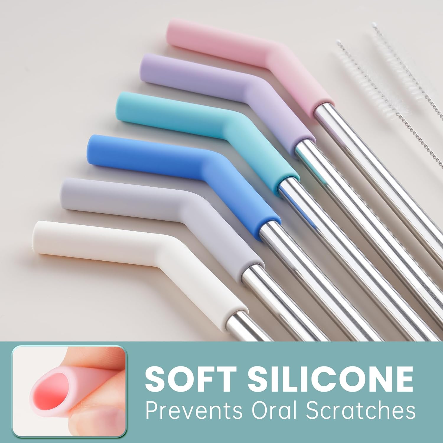 - Functional and Practical: The soft silicone tips prevent direct contact between your lips and the cold stainless steel, enhancing your drinking experience by offering a comfortable sipping surface. Ideal for a variety of drinks such as coffee, cocktails, juices, and water, these straws are perfect for home use, parties, and picnics.